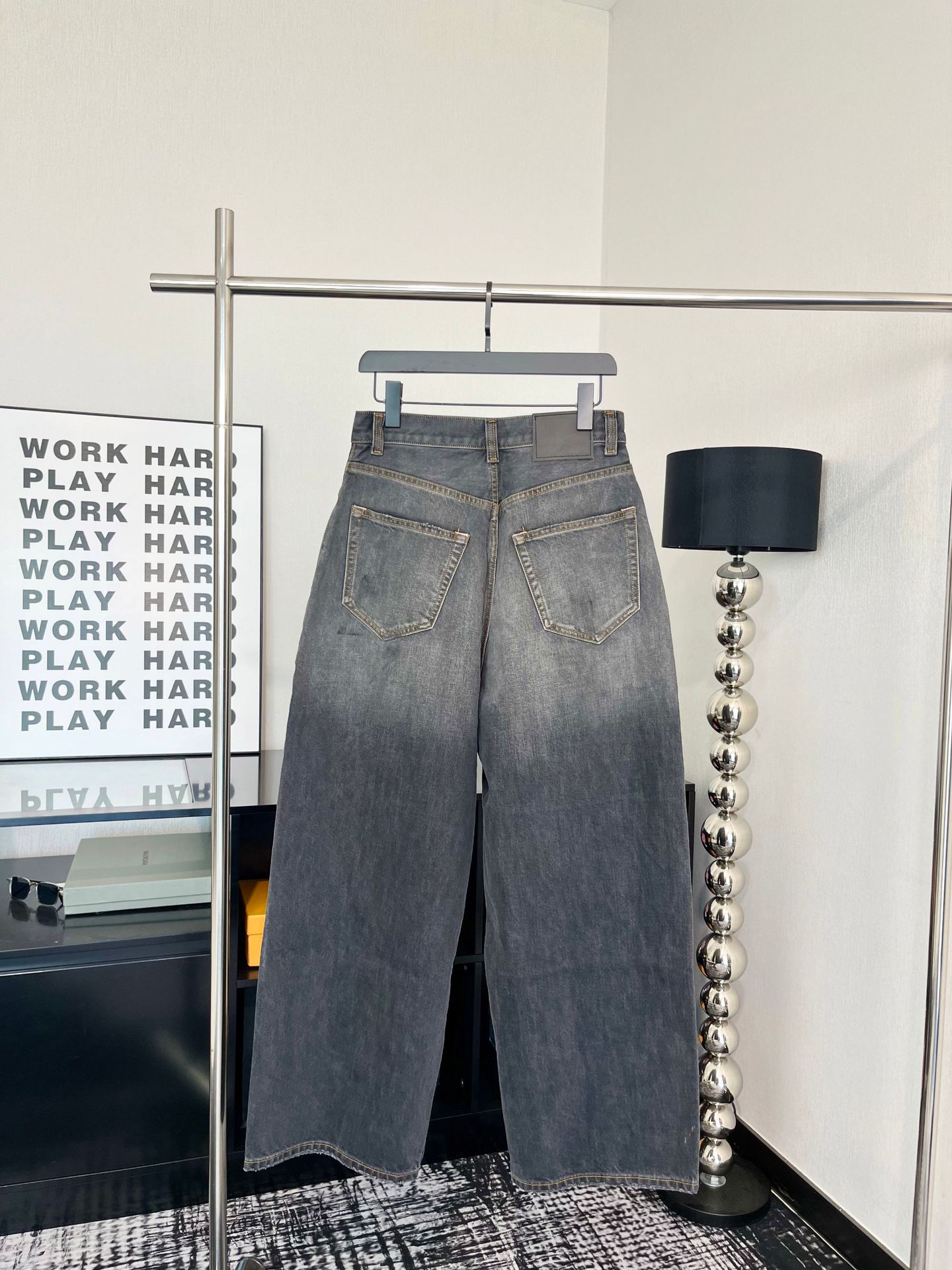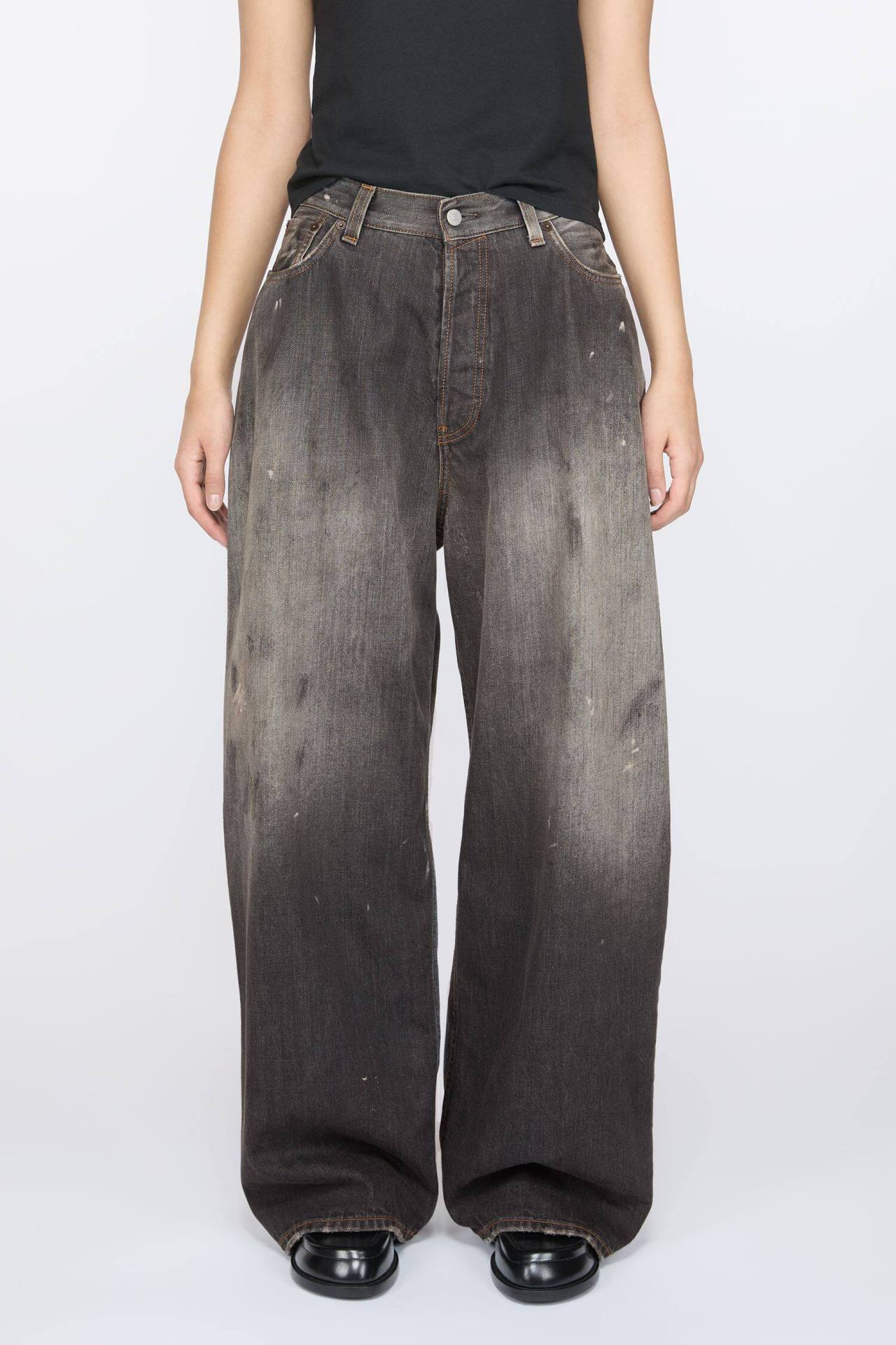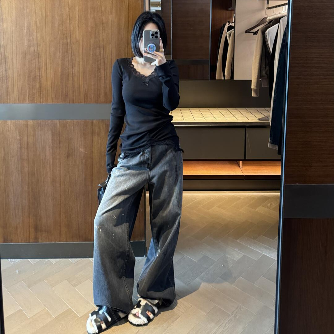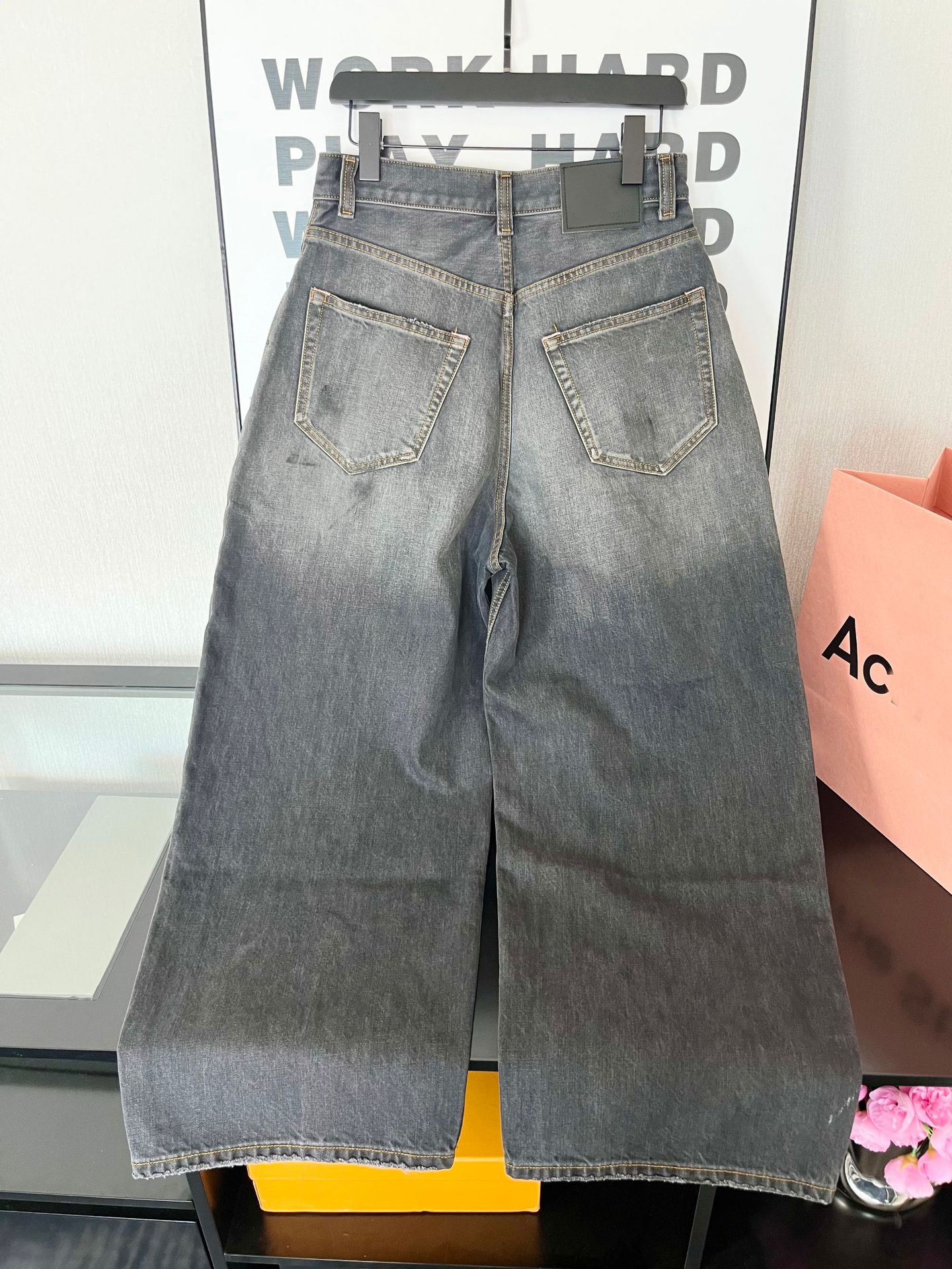 正確なトップ版AC家2023M男女同項のゆるいbaggyはやせている広脚の汚れたインクジーンズを示している