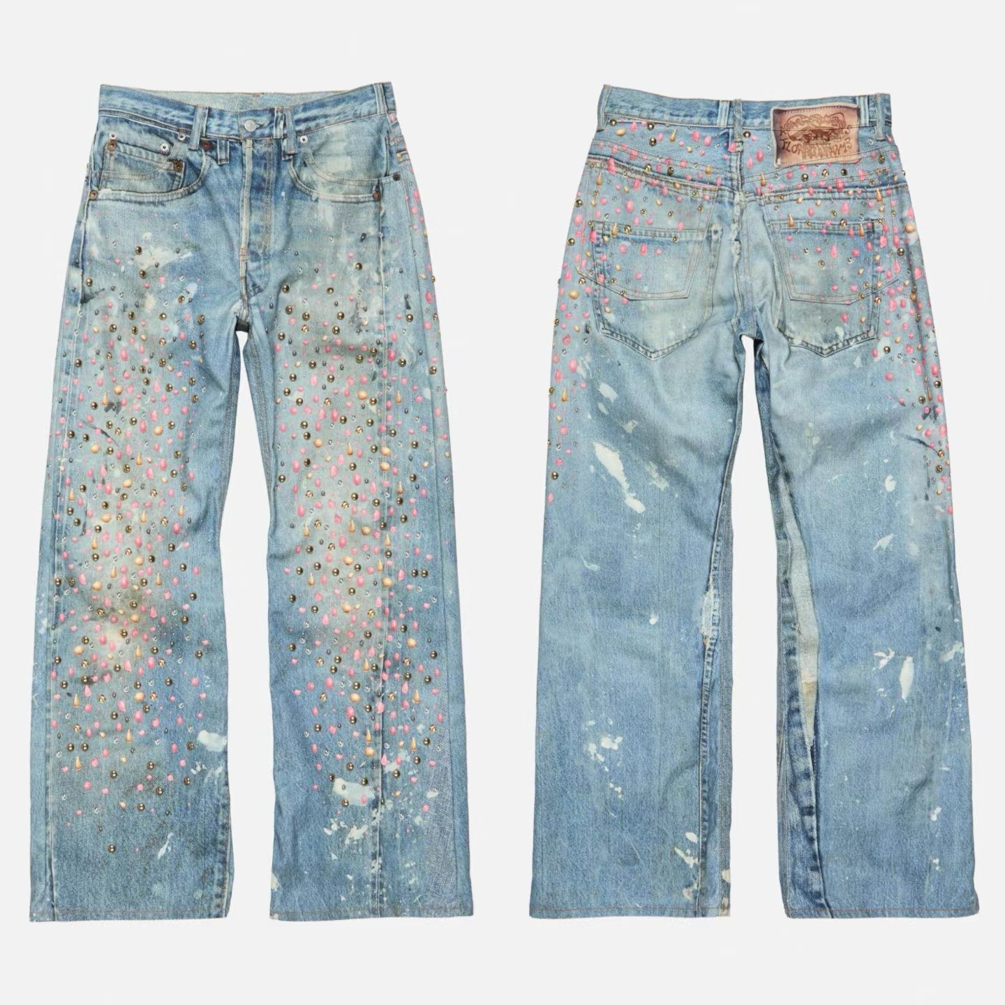 AC+男女同款 限定3D打印烫钻百颗柳钉糖果胶囊直筒牛仔裤