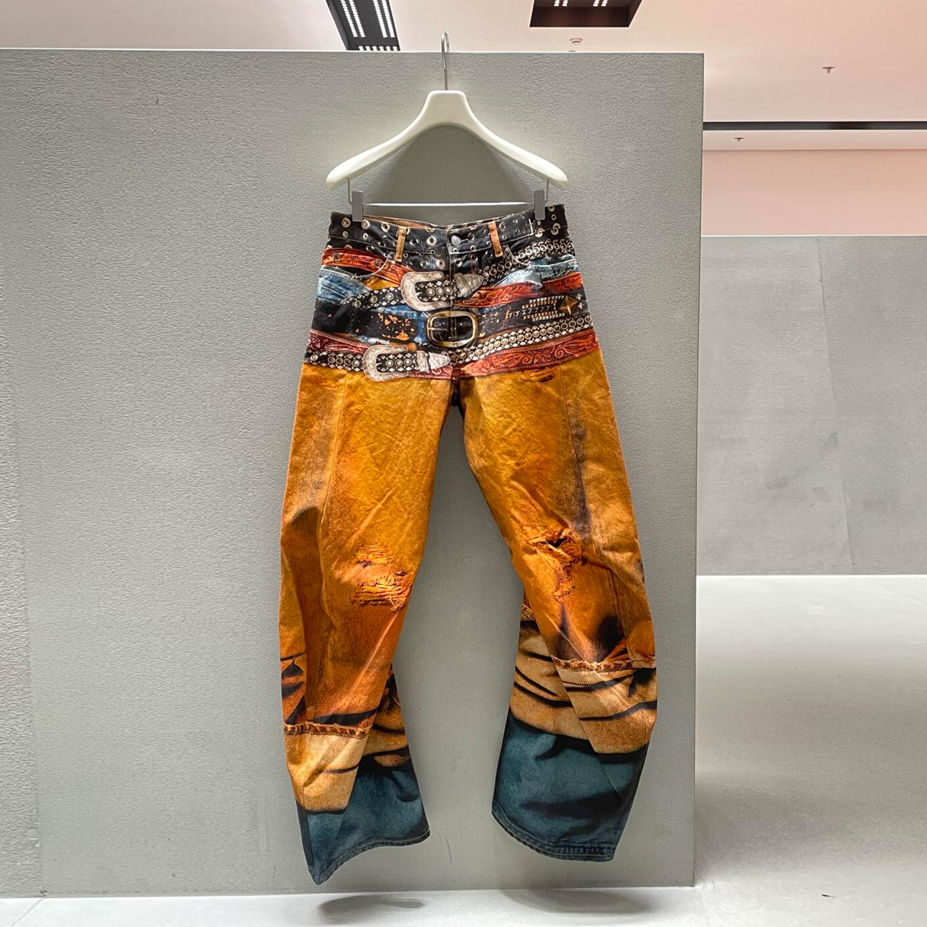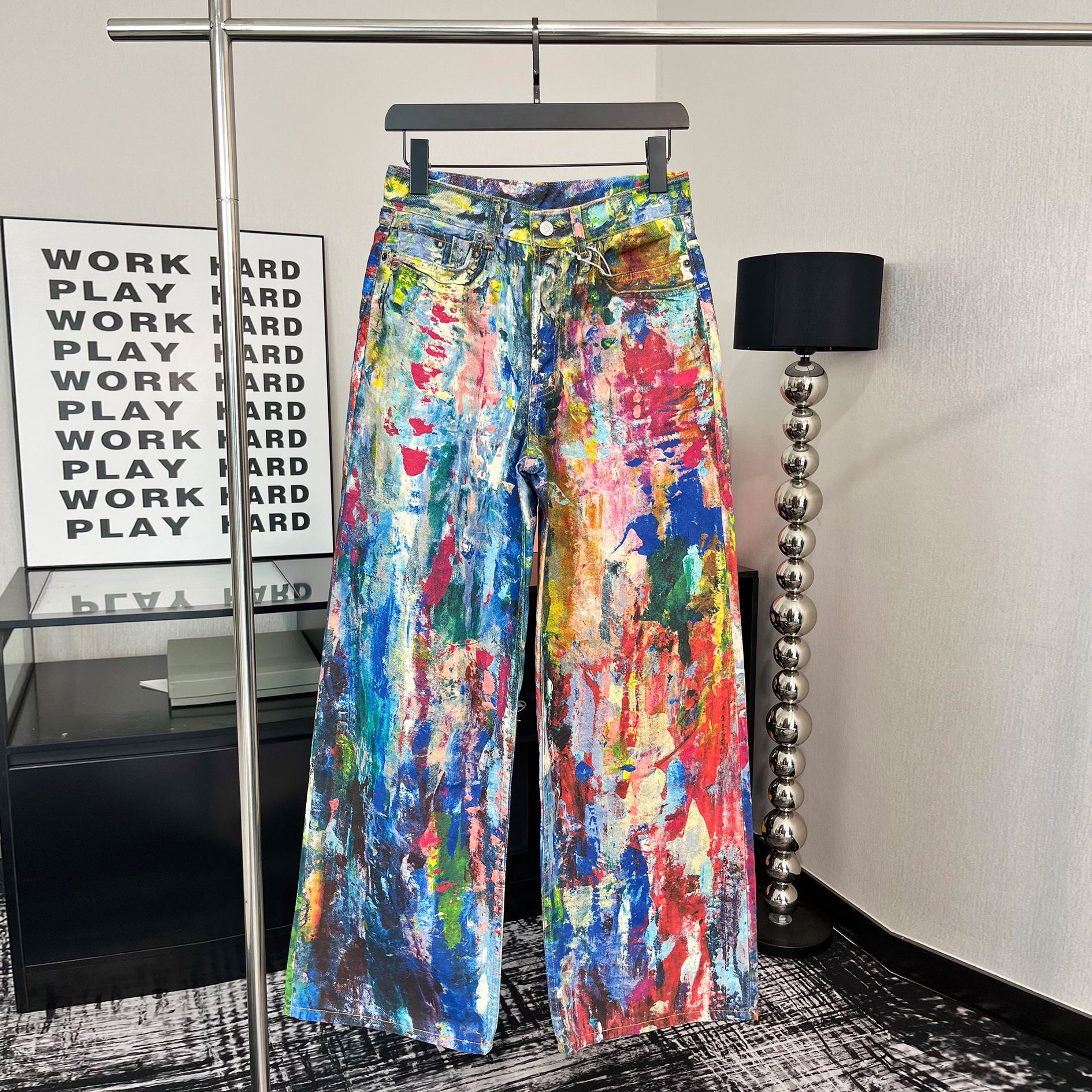 高品質版AC2024秋冬3Dプリント男女兼用油絵ペイントパレットストレートジーンズ