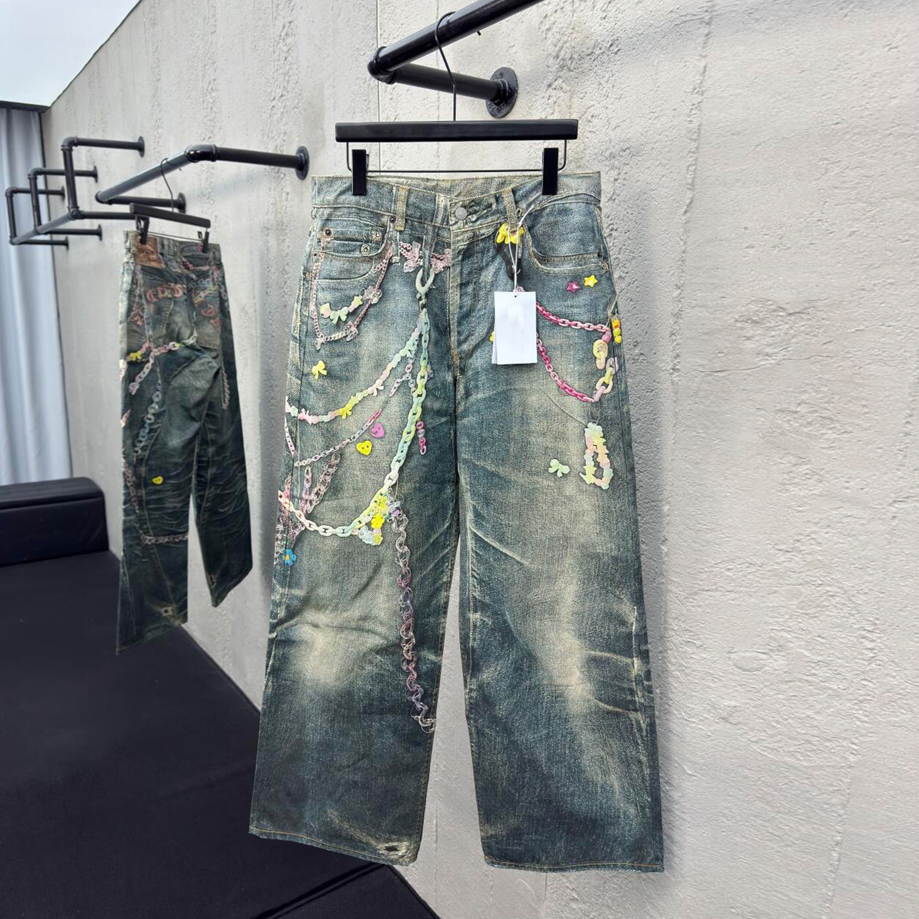 ハイエンドバージョンac 1981M男女同モデル2025新型3dプリントキャンディチェーンneストレートジーンズ