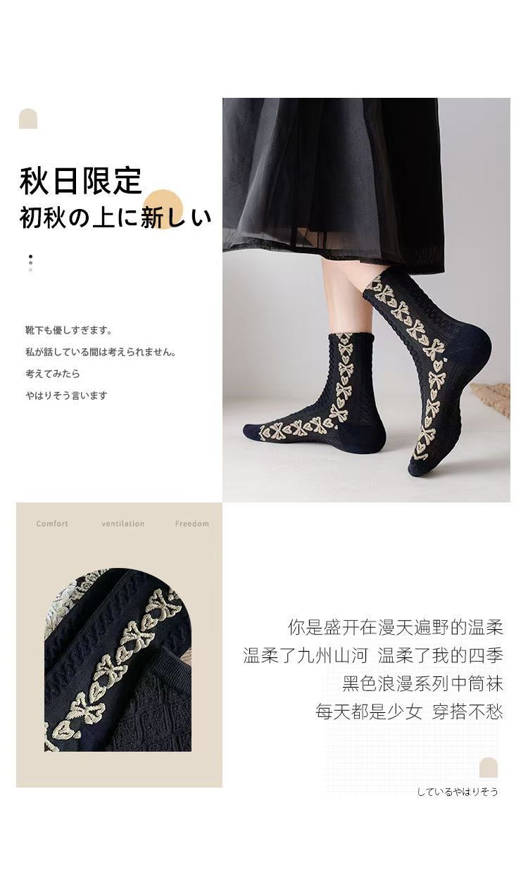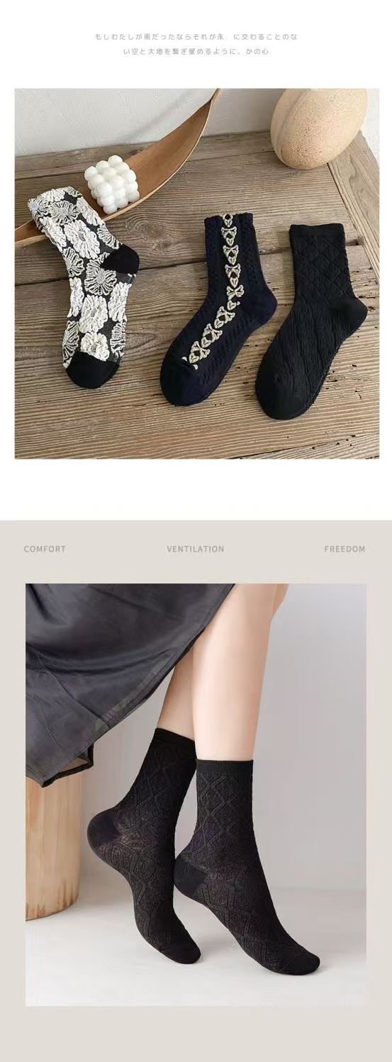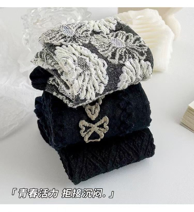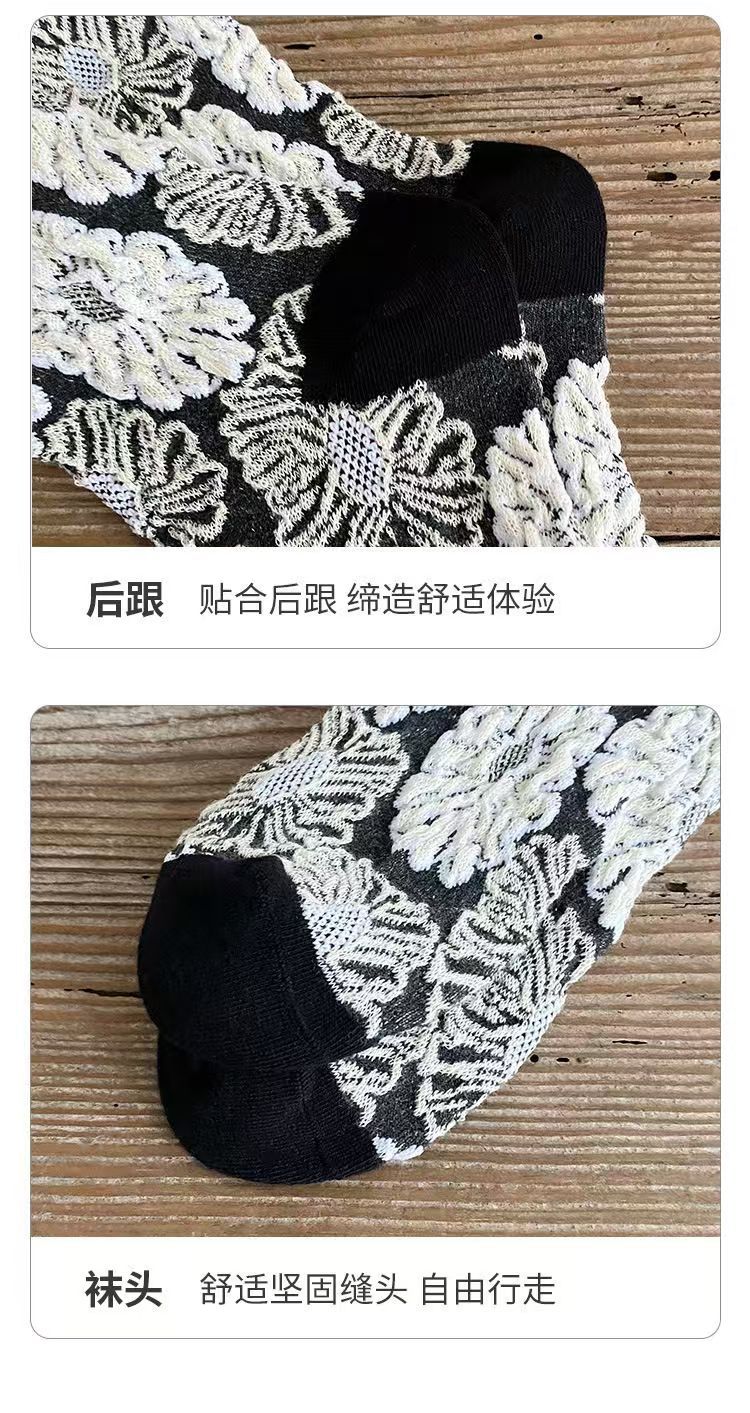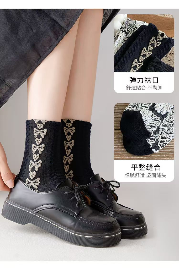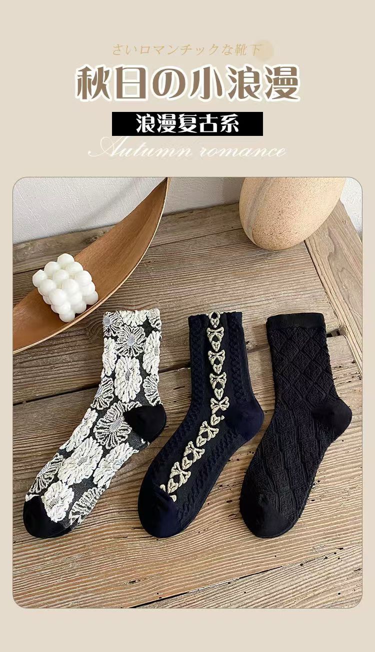 宮廷風レトロ立体レリーフ靴下女性中筒秋冬甘美小衆花可愛い森系カジュアル着心地