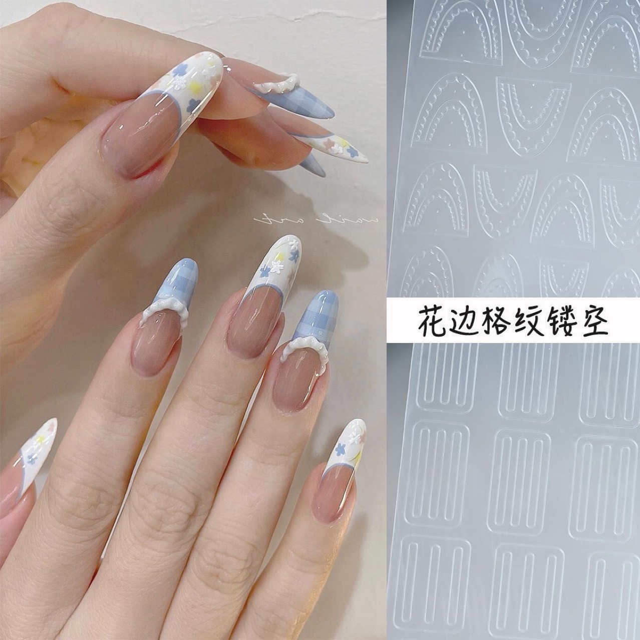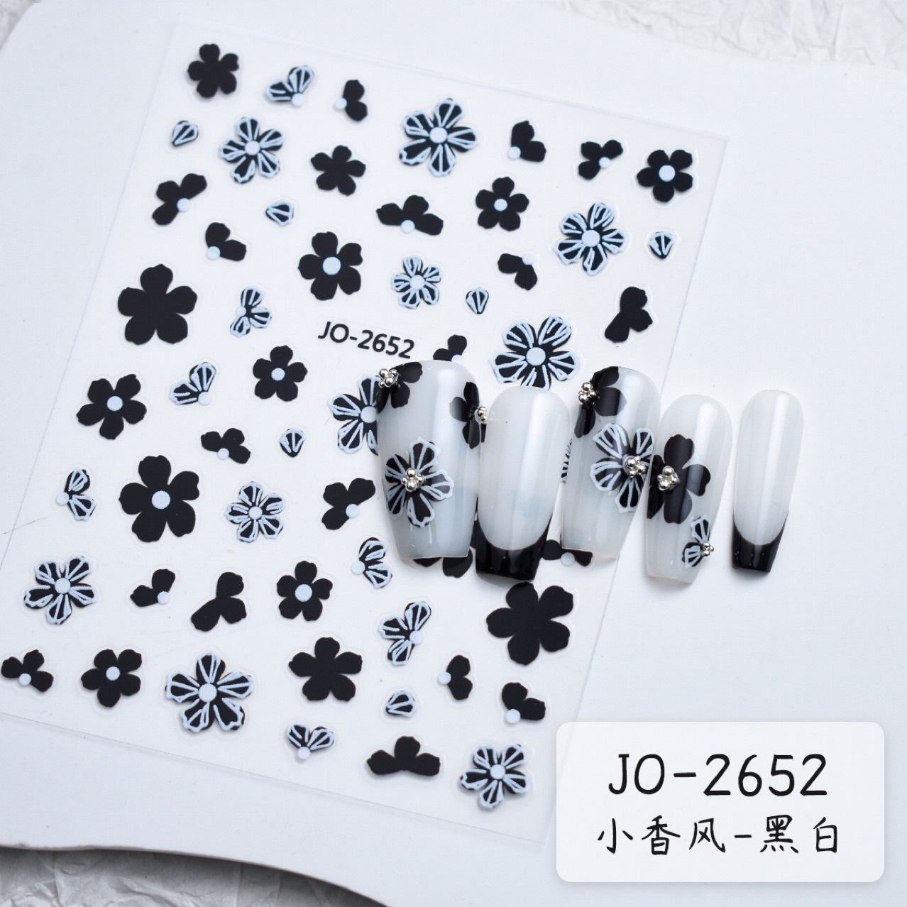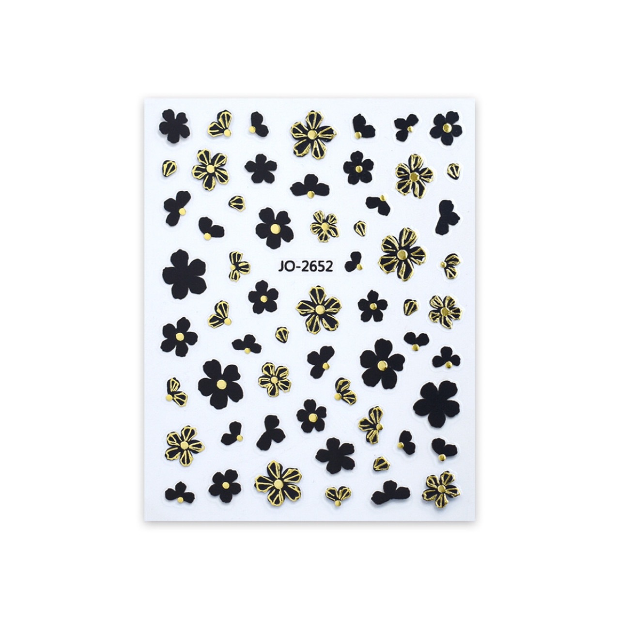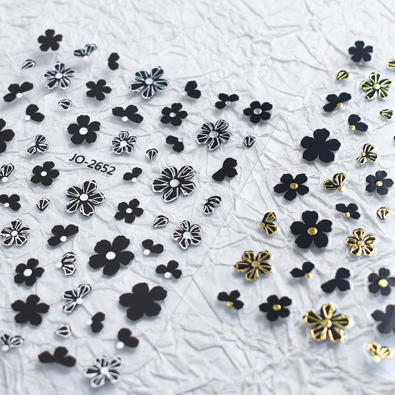 インターネット有名人のインス風粘着式雰囲気ステッカー、黒の透かし彫りの小さな香りのよい花の五弁の夏らしい美白ネイルデカール