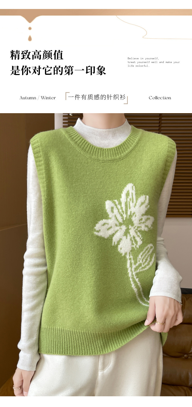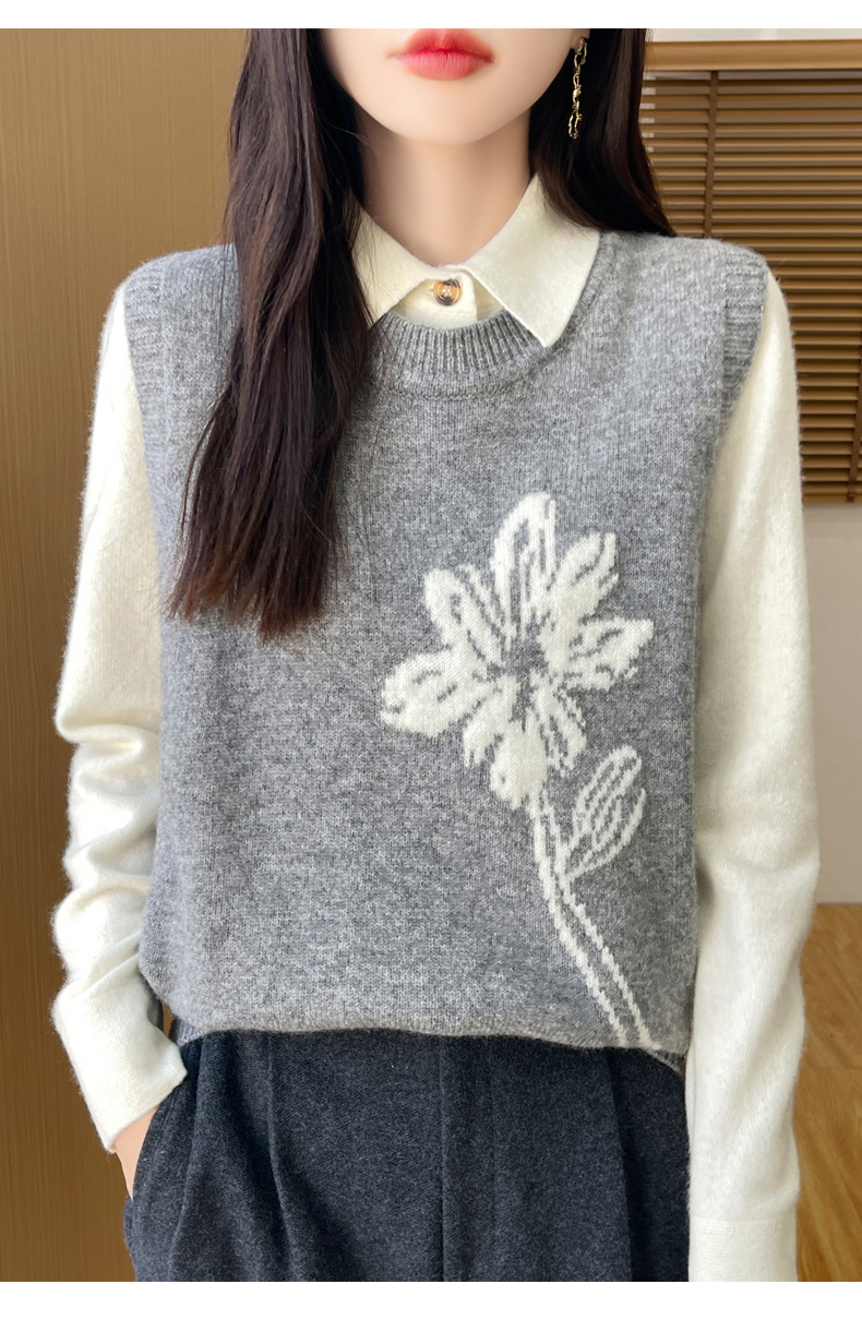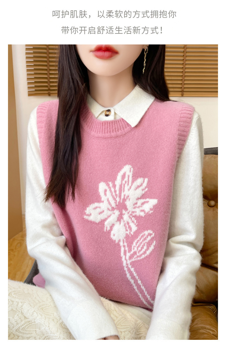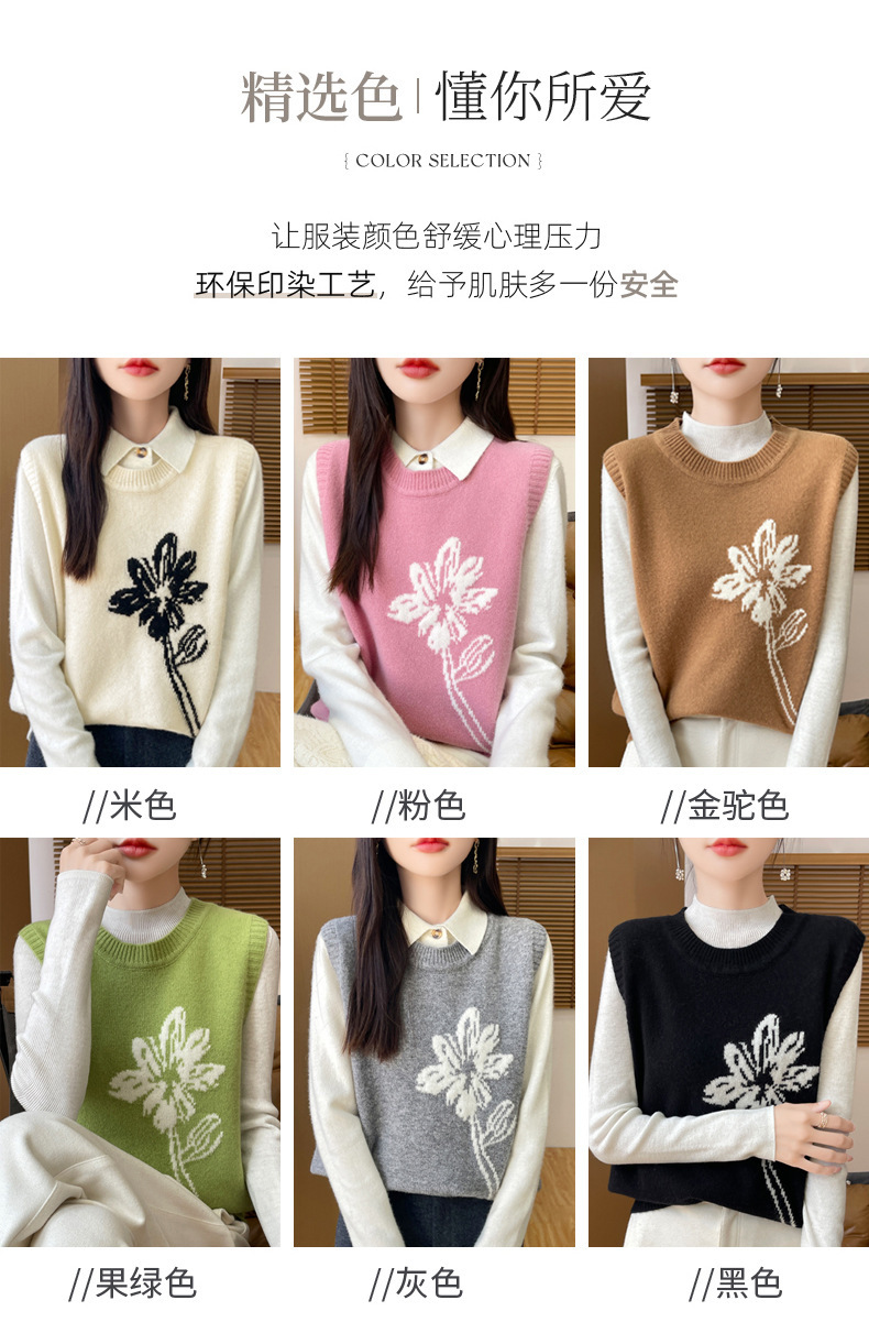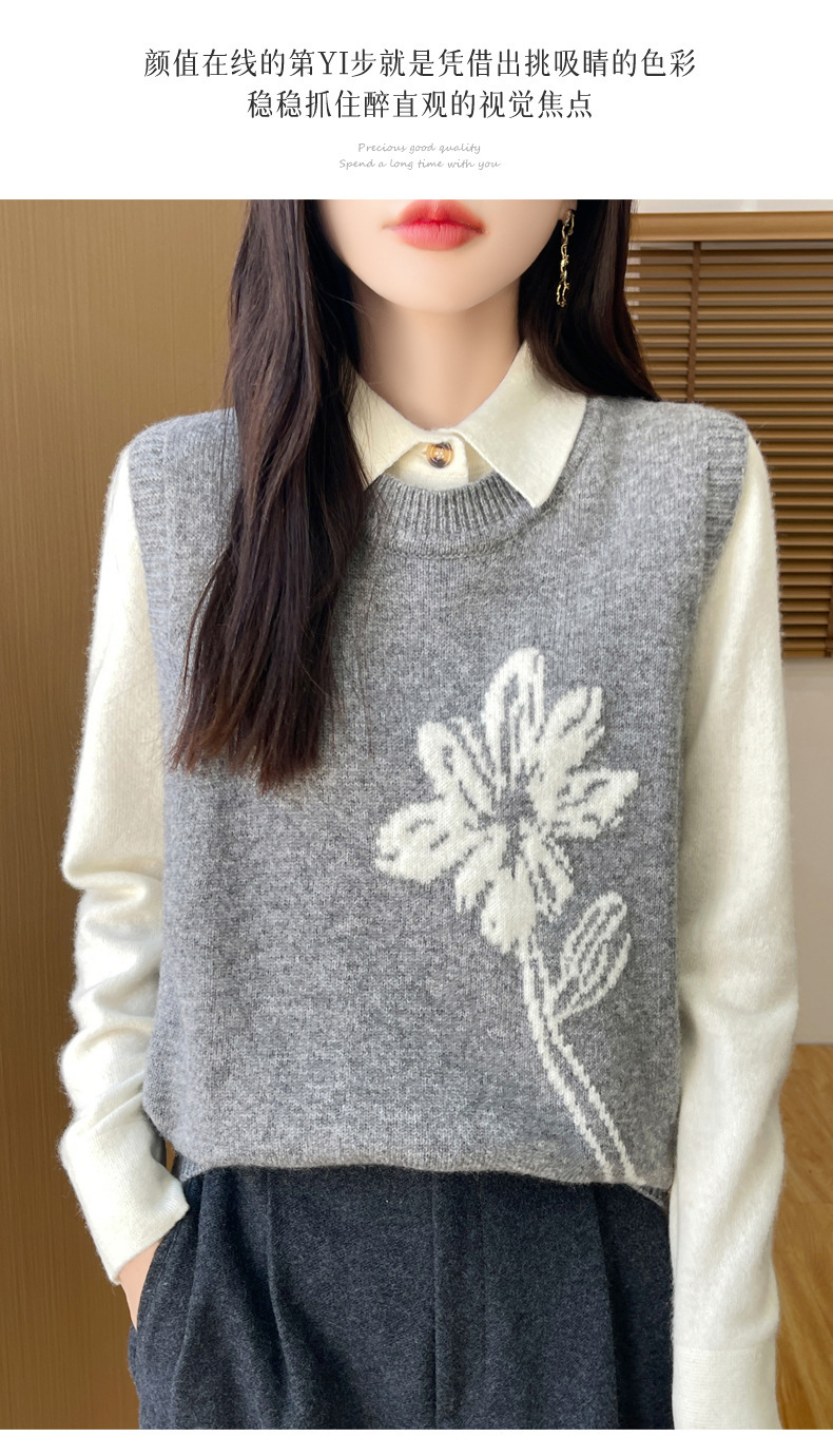 ウール混紡2024秋冬女装新短金ゆるいvネック純色ジャケット外着ニットベスト