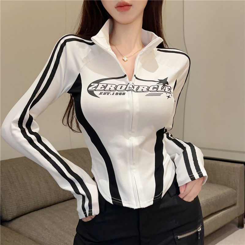 アメリカのセクシーなギャルのアルファベットのプリントの長袖のtシャツの女性の秋冬の新型の修身はやせています。