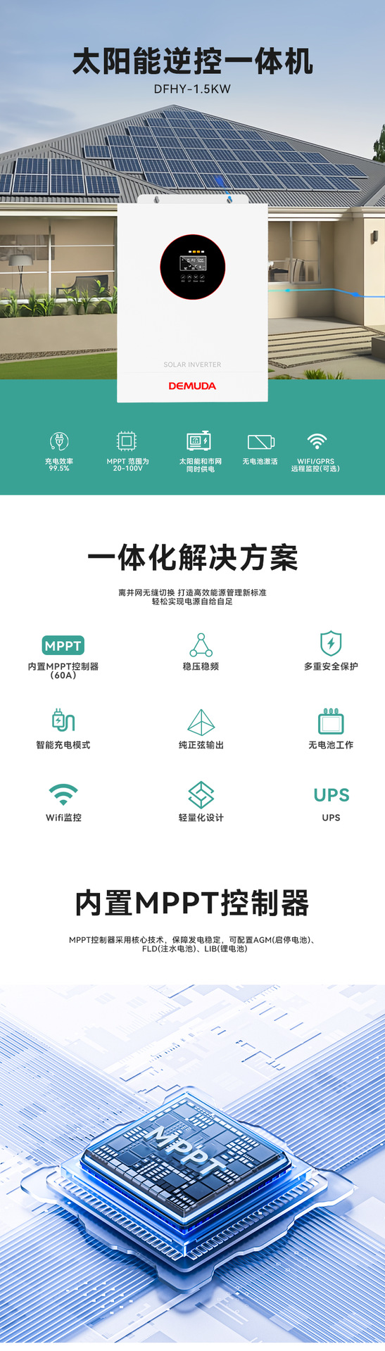 德姆达新品光伏储能逆控一体机1.5KW-6.2KW均有现货,支持LOGO / 面板颜色 / 包装 等,欢迎与工程师联系设计需求。