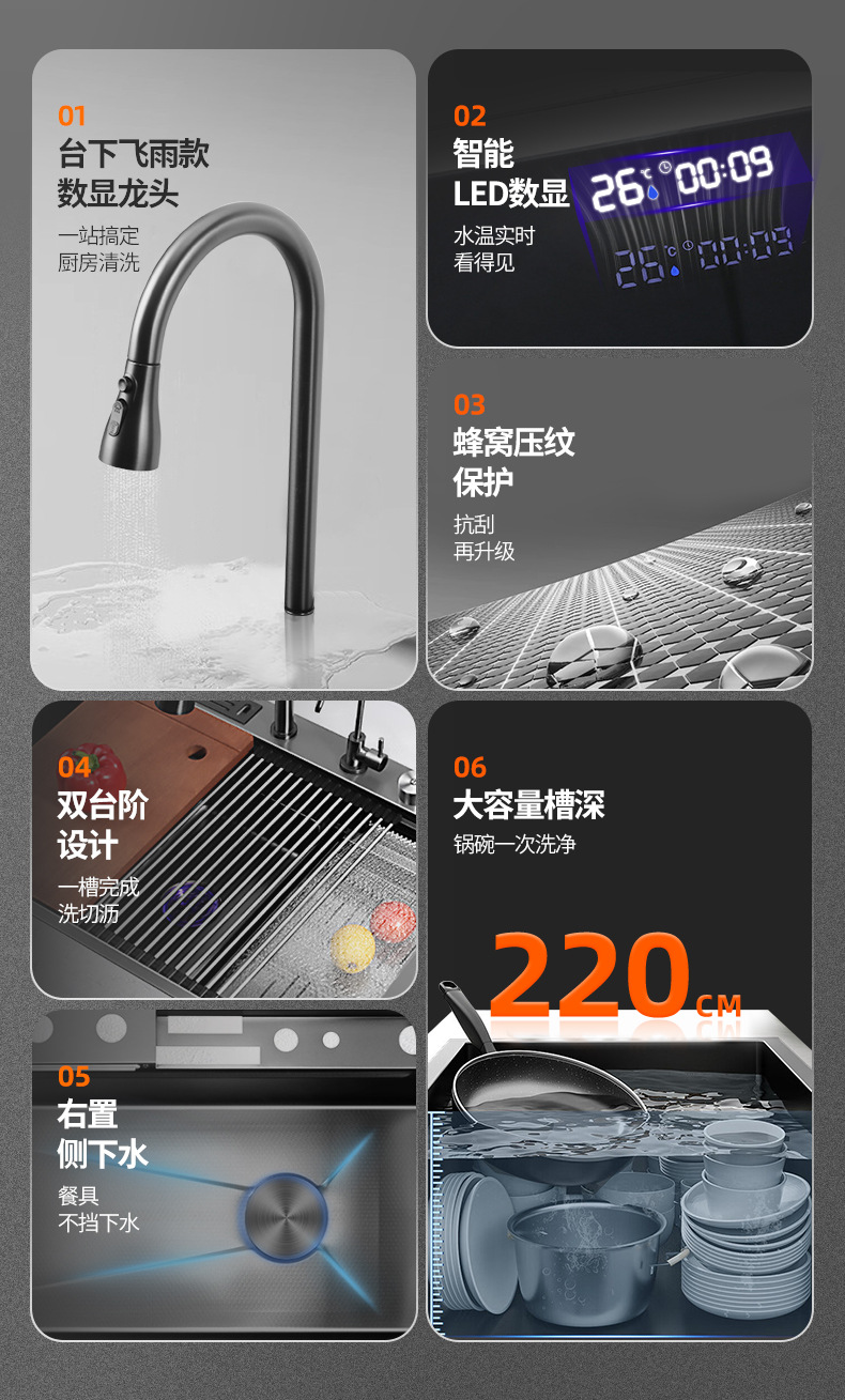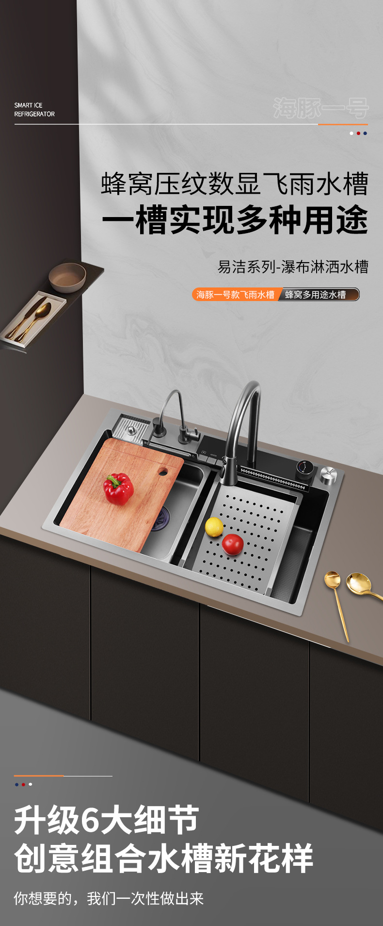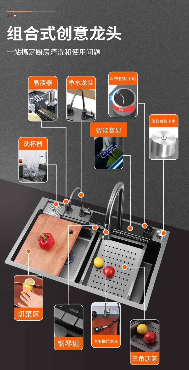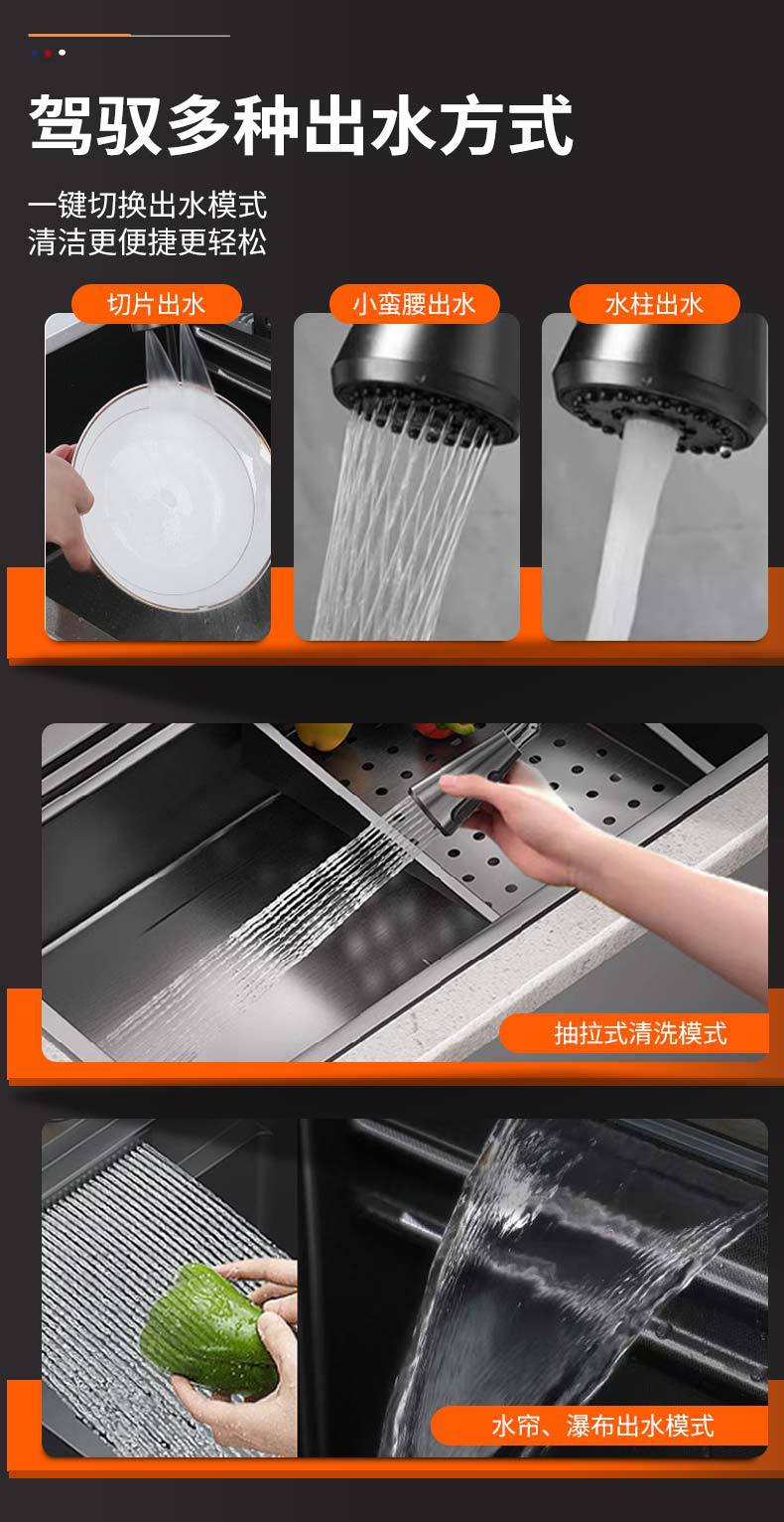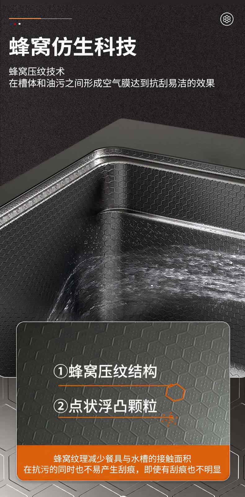 鲸鱼水槽304不锈钢特厚水槽大单槽飞雨瀑布家用蜂窝洗菜盆洗碗槽