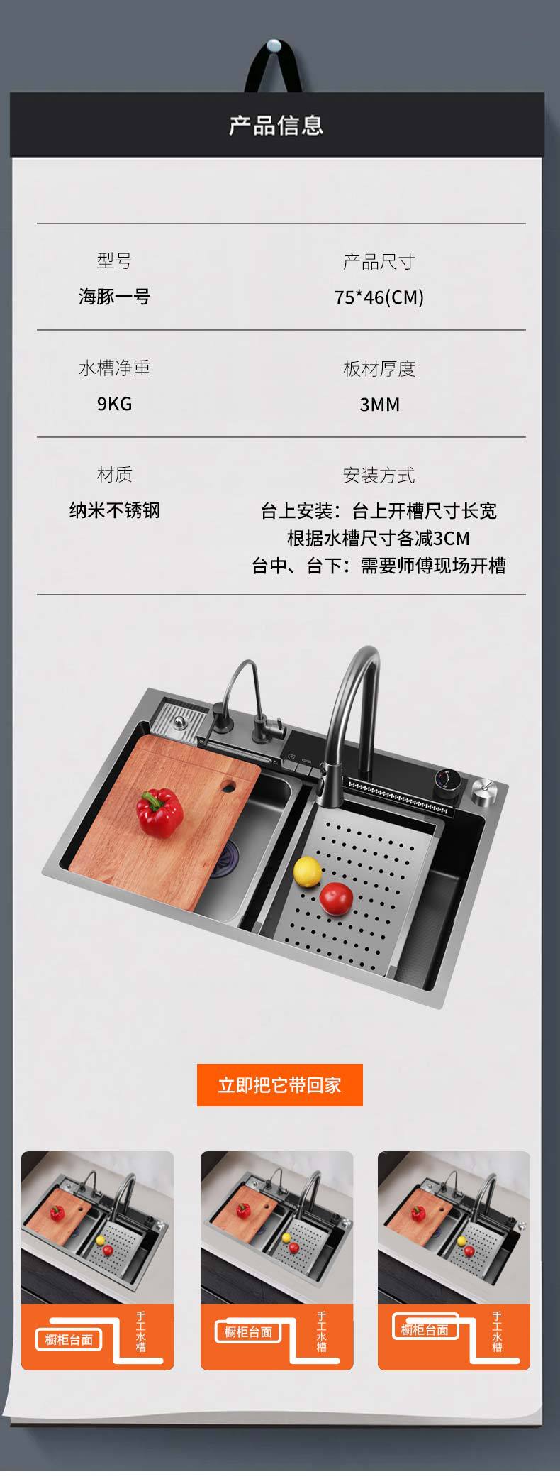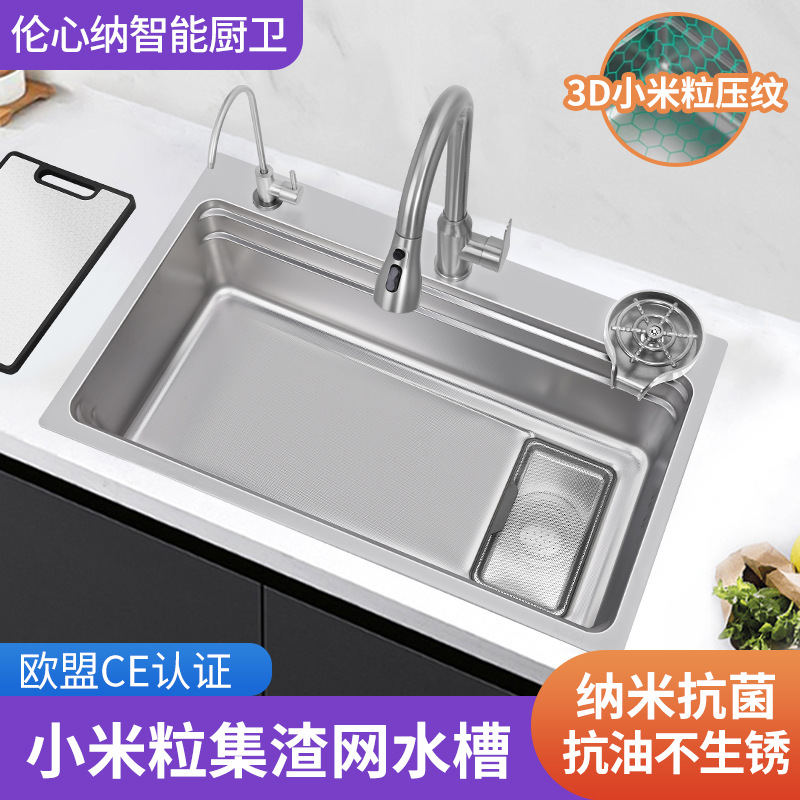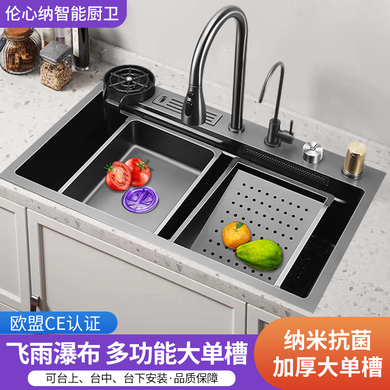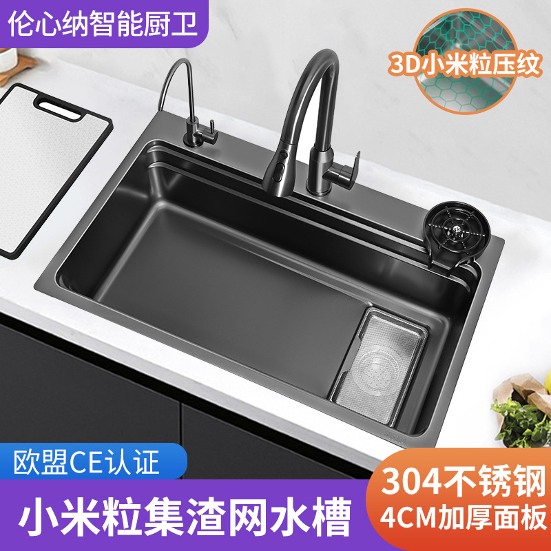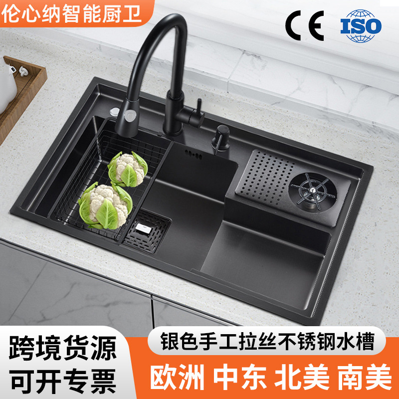 ステンレス大単槽厨房多機能水槽黒金剛ナノ皿洗い池単槽ネット赤階段洗濯盆