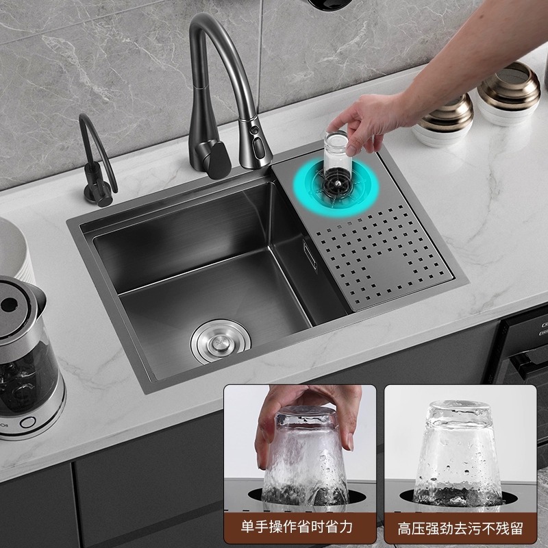 ナノブラック金剛水槽大単槽厨房304ステンレス製手作業で野菜を洗う洗面器の洗面台の下の家庭用