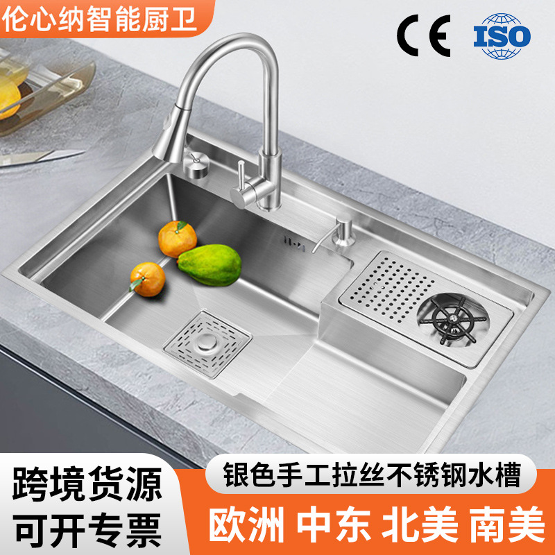 シルバー7848洗杯器水槽手作り伸線大単槽キッチン多機能水槽ステンレス洗面器