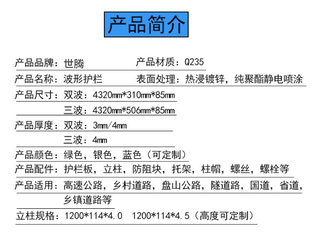 高速道路二波三波形ガードレール省道国道スプレープラスチック亜鉛メッキ衝突防止波形ビーム鋼ガードレールメーカー