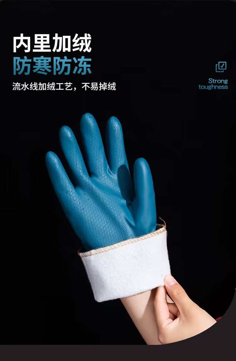 冬季家务加绒加厚防水手套洗衣服耐用pvc一体绒束口家用防水手套