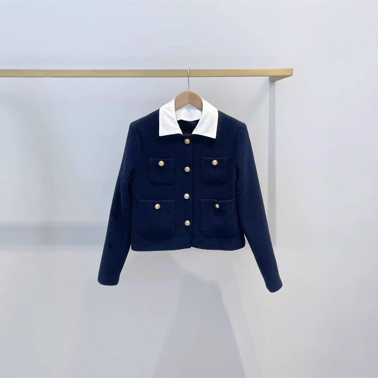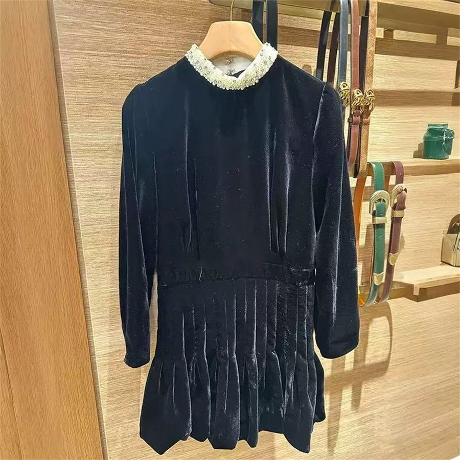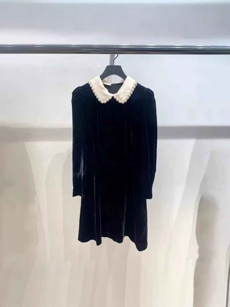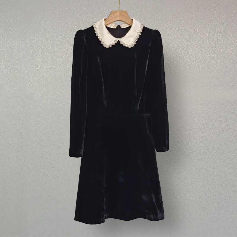 2024秋冬明星同款法式甜美可拆卸珍珠边缎面娃娃领千金风连衣裙