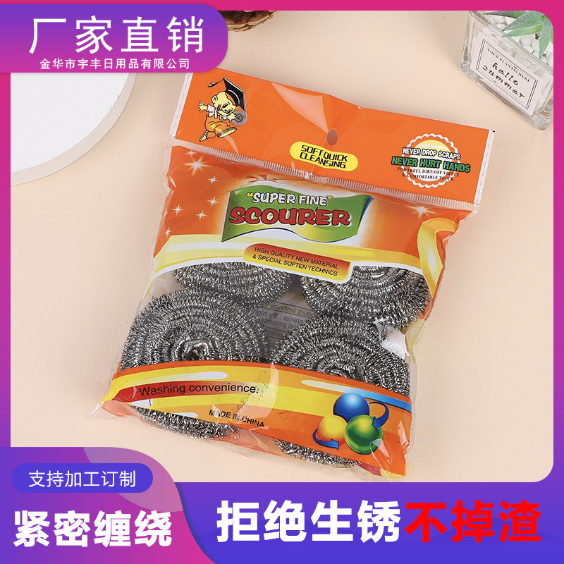 義烏メーカー日韓文彩袋包装ワイヤーボール洗浄ボールは強力に汚れ除去洗浄鍋神器ワイヤーボールを洗浄します。