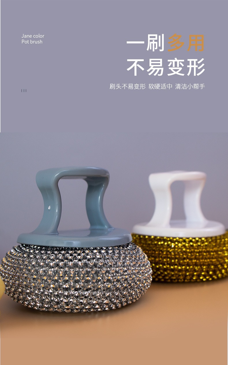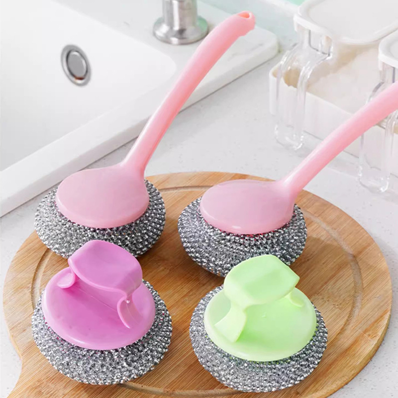 带手柄锅刷清洁刷洗锅刷厨房清洁刷子清洁球钢丝球长柄锅刷