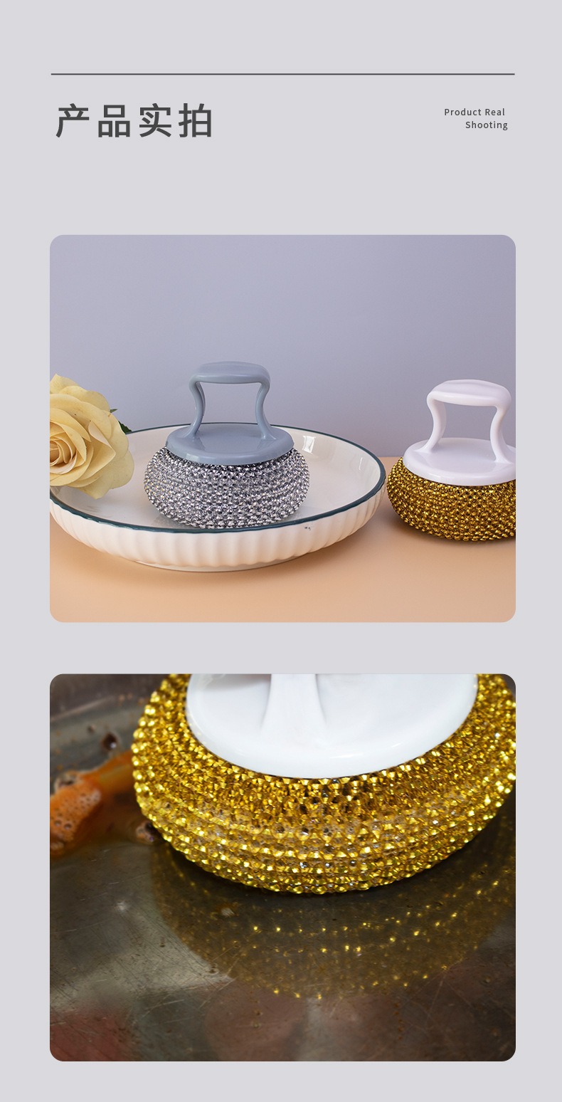 ハンドル付きスチールボール家庭用ステンレス大型鉄線ブラシが落ちない清潔なボールキッチンブラシ鍋洗浄ブラシ