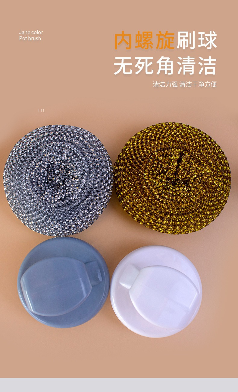 洗浄ボール、ポットブラシ、プラスチック鋼線ボール、大型、持ち手付き、鍋を傷つけない、焦げ付き防止、取り外し可能な洗浄ポットブラシ