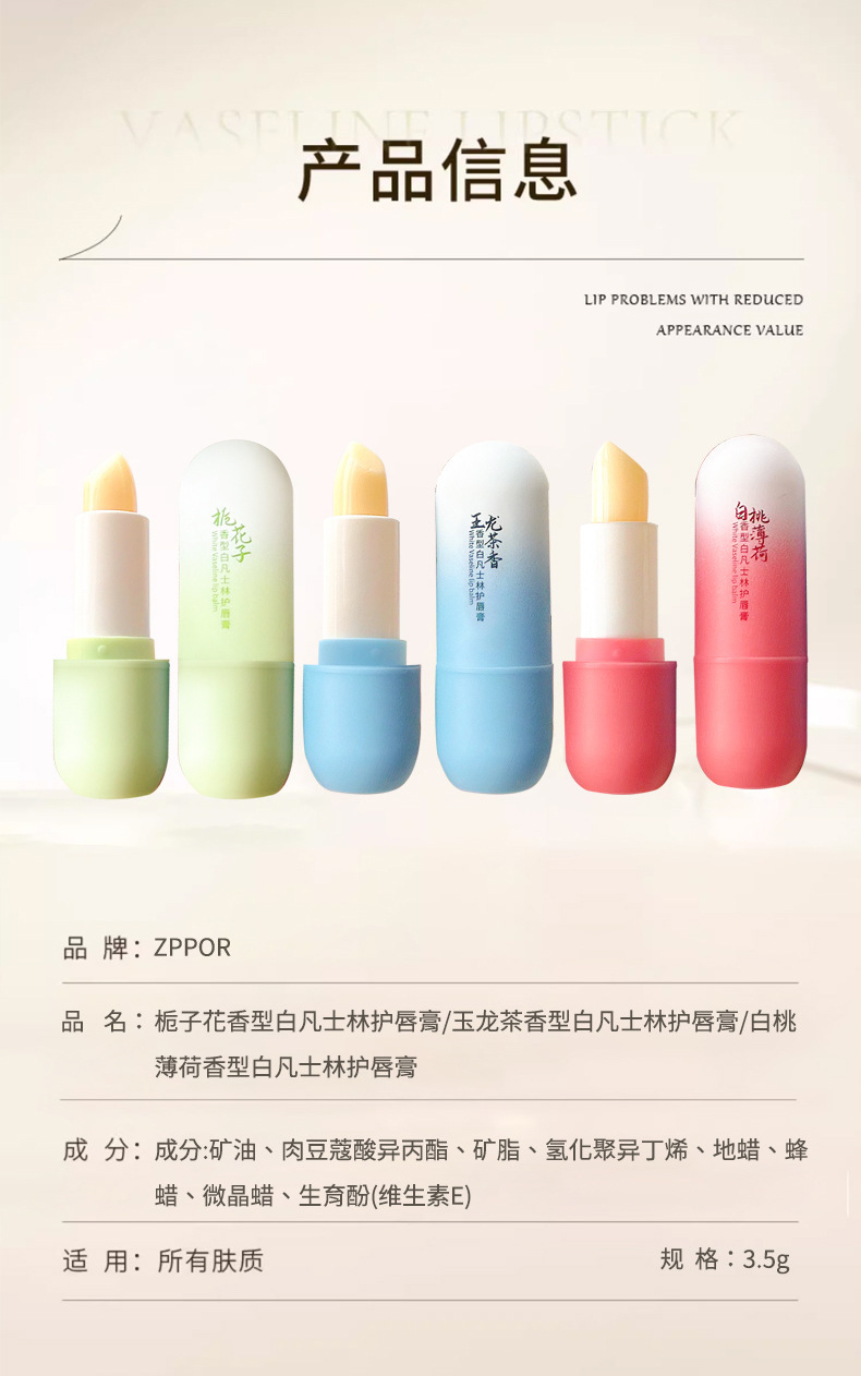 ZPPOR白ワセリン補水潤唇クリーム保湿潤唇クリームクチナシ花冬潤唇クリーム卸売り代発