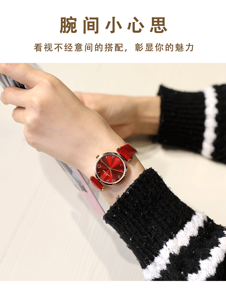 2024新しい3633レディースファッションシンプルな个性的な革ベルト腕时计学生レディース赠り物軽薄コンパクトクリスマス