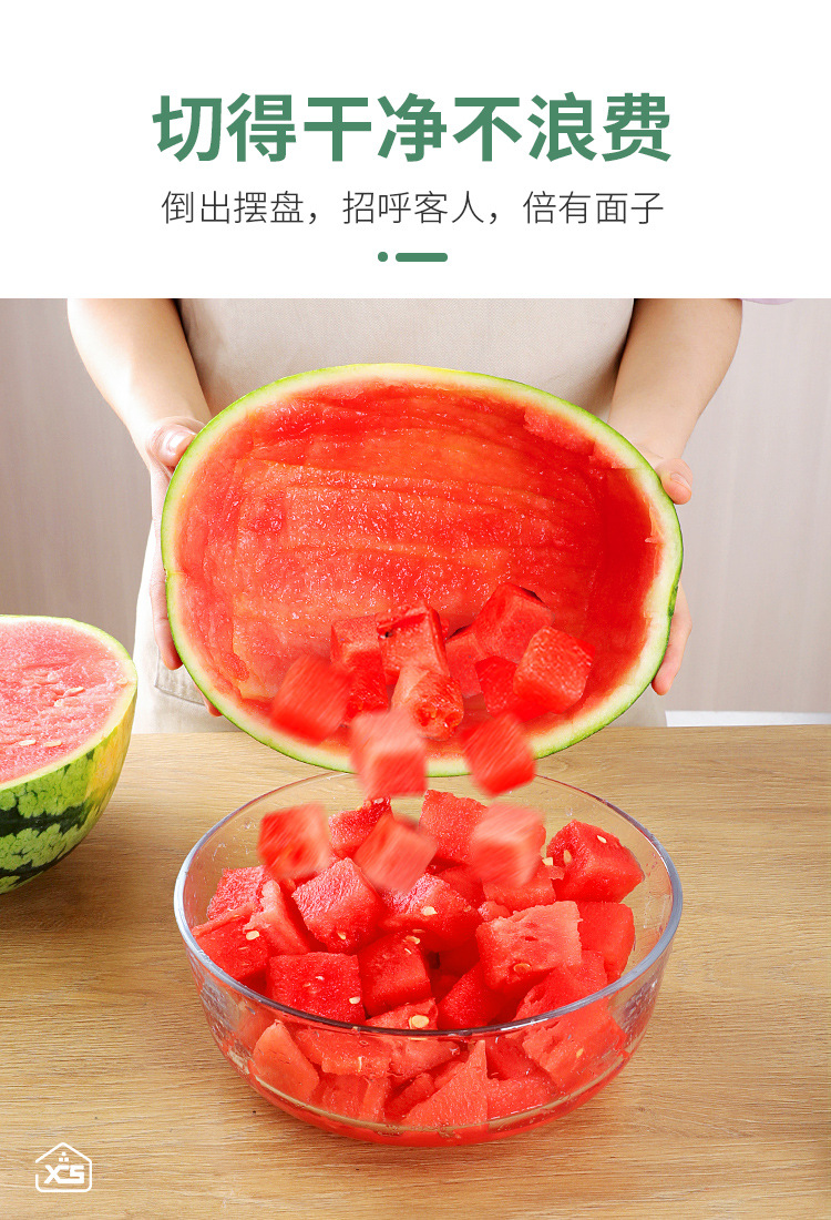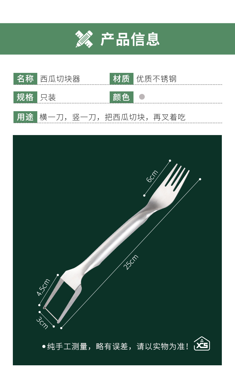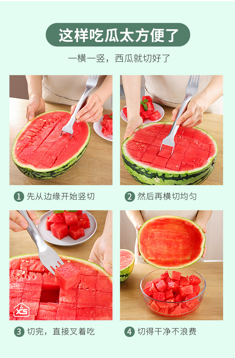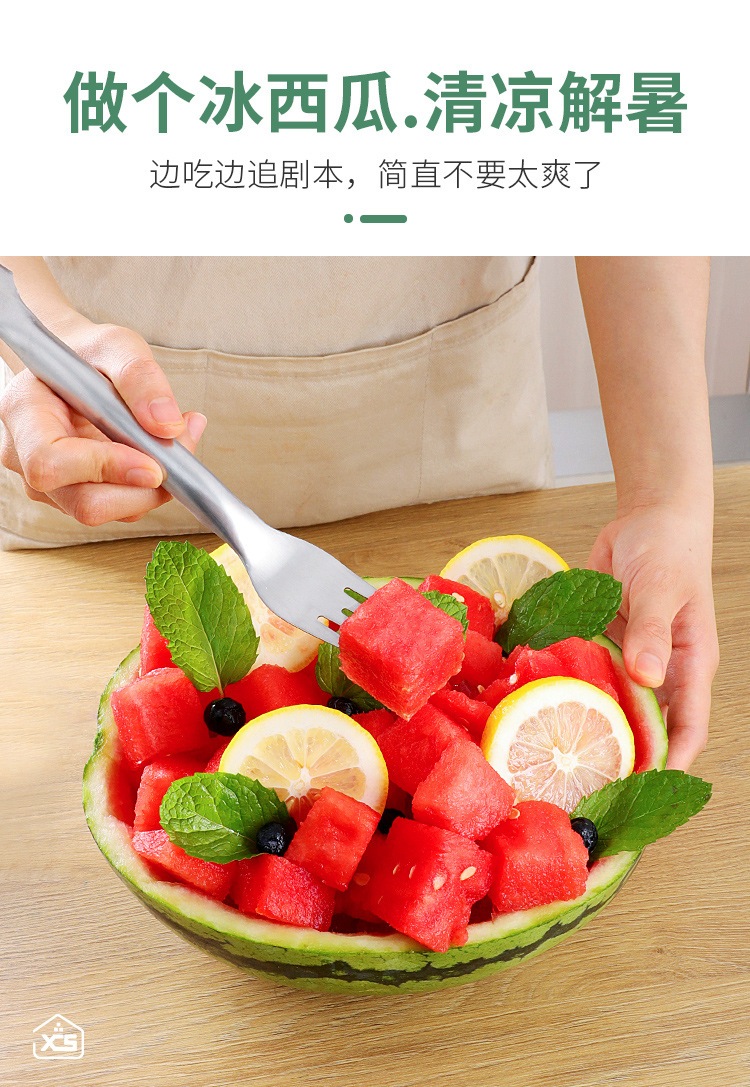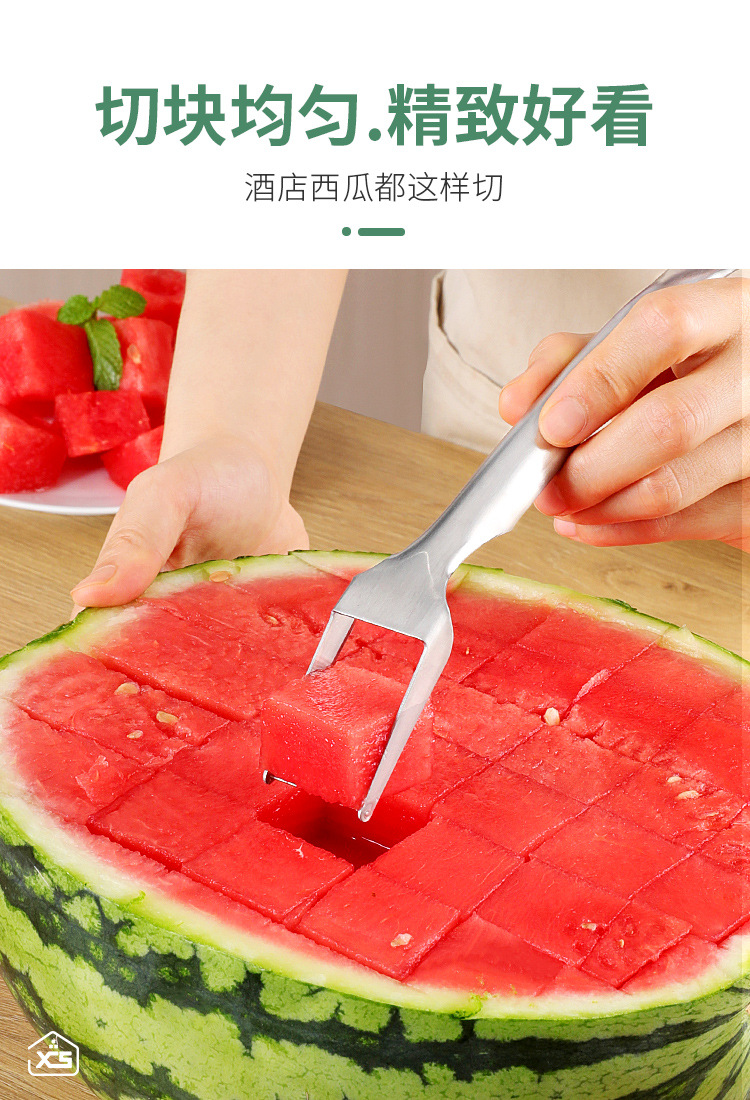 メロンの神器を食べるダブルヘッドはステンレスのスイカで業務用家庭用多機能二合一フォークスイカチョッパーを切ることができます。
