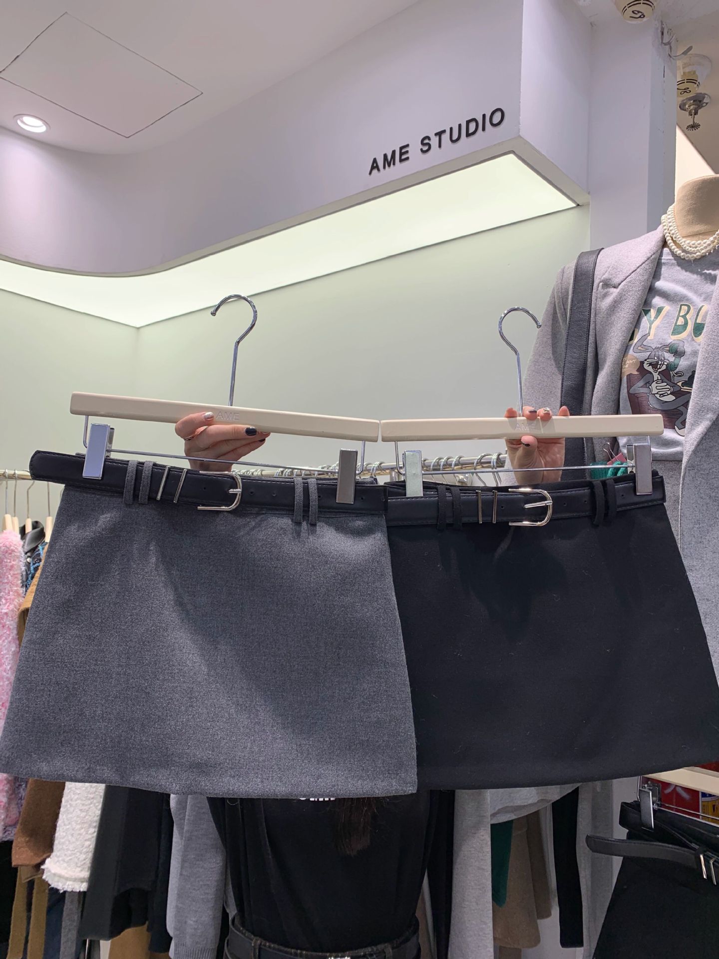 秋冬はグレーの毛を厚くしています。スーツのショートパンツは女性がデザイン感を着ています。