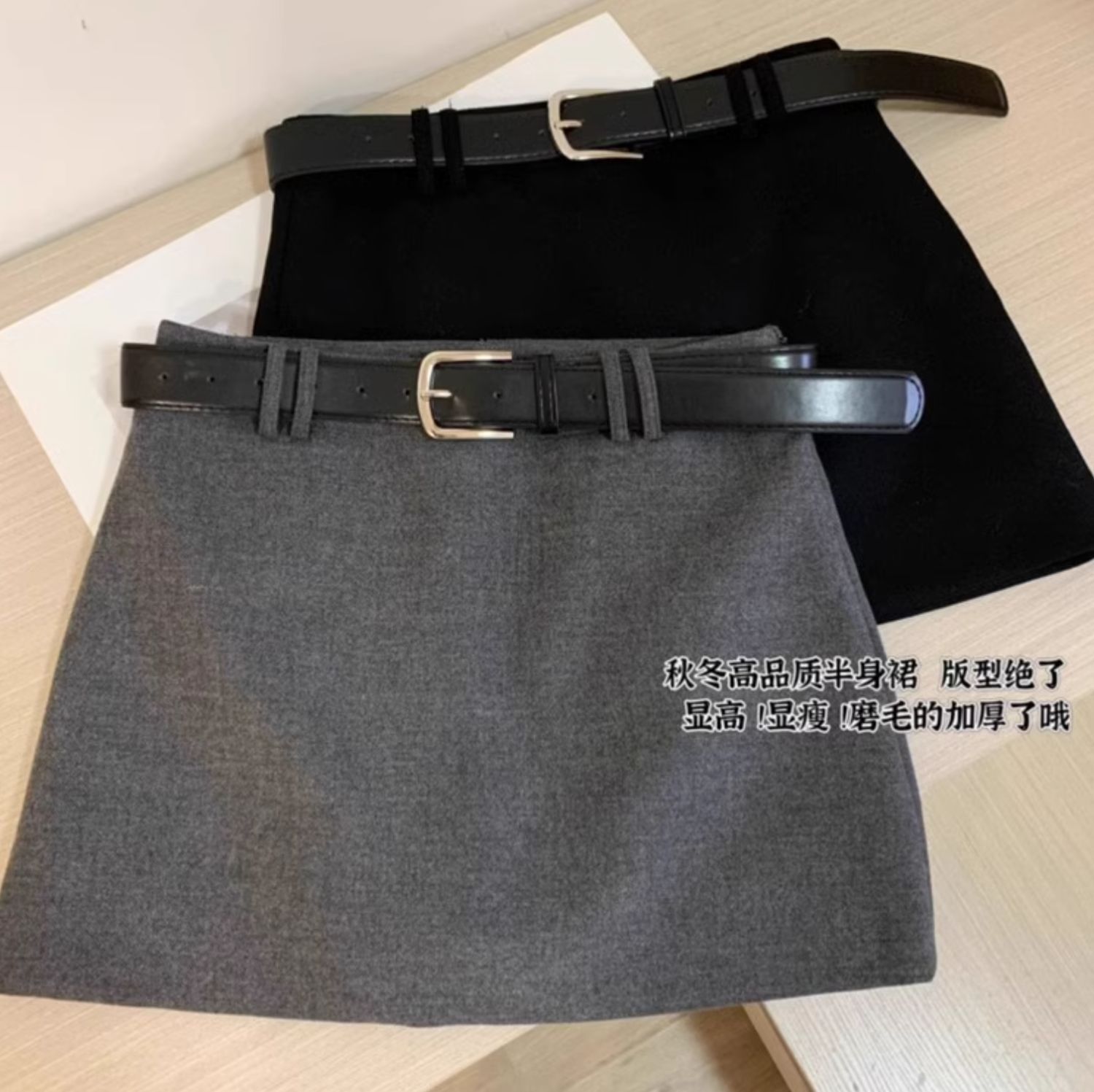 24春秋は灰色の毛を厚くしています。半身のスカートの女性の大きいサイズのハイウエストはやせています。