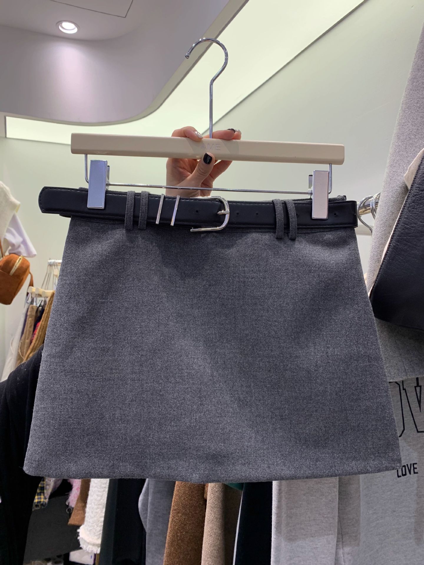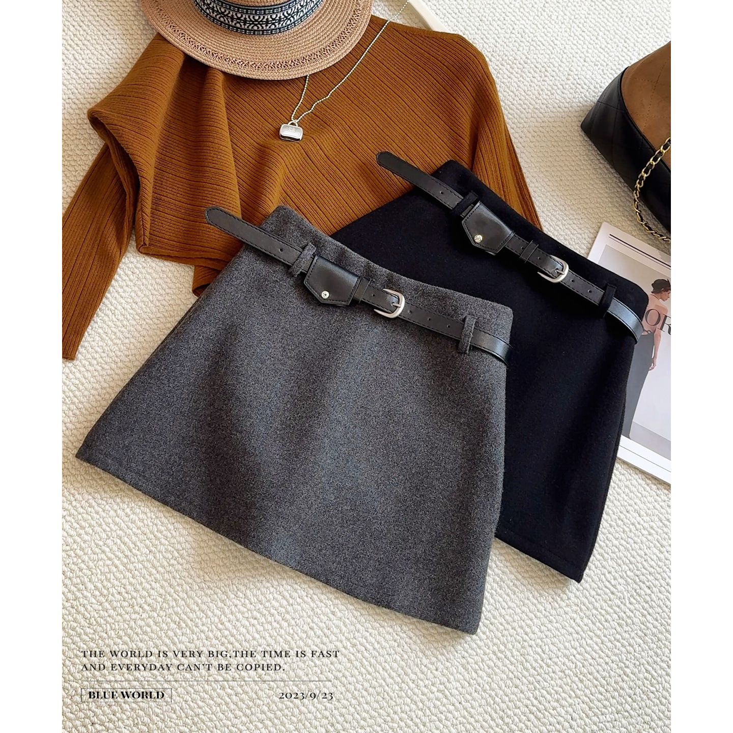 时尚百搭灰色毛呢半身裙女秋冬新款高腰显瘦a字裙辣妹防走光短裙