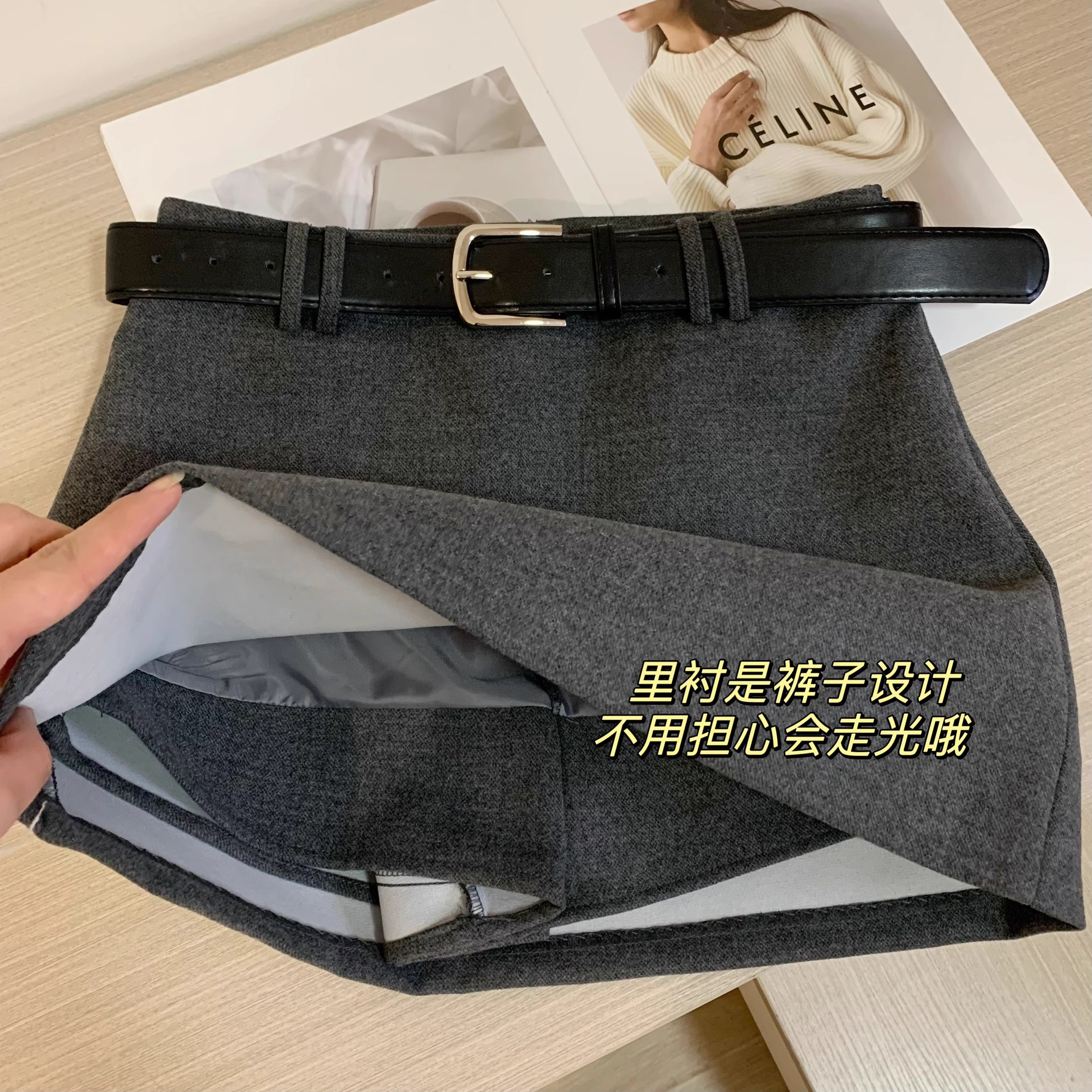 灰色高腰西装半身裙裤子女2025秋季新款设计感侧开叉显瘦短款裤裙