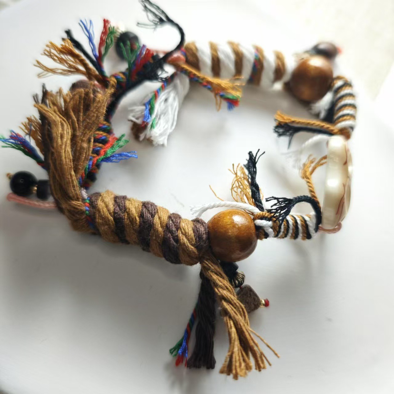 新中式カラフルビーズ民族風レトロシミア陶器編み紐ネックレス個性的なペンダント高級禅アクセサリー