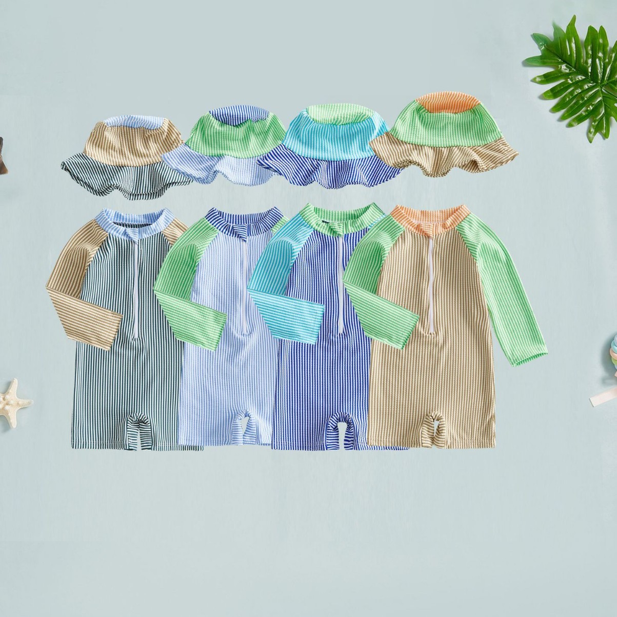 60-70-80-90-100帽子ワンピース長袖子供水着
