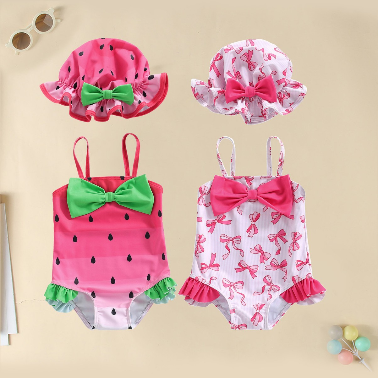 0-6,6-12M,12-18M,18-24M,2-ータ3点セット帽子をかぶっている分体子供の水着