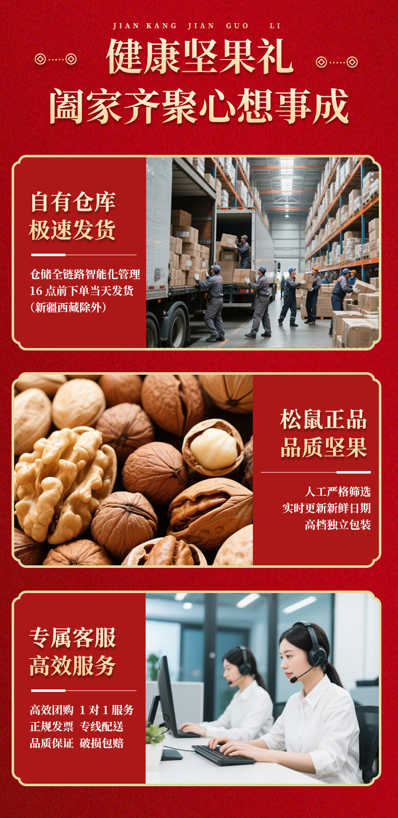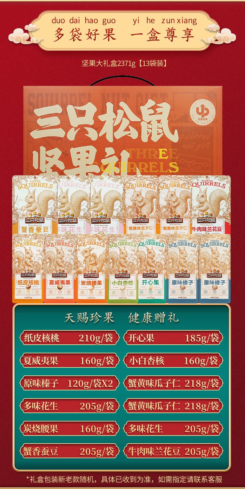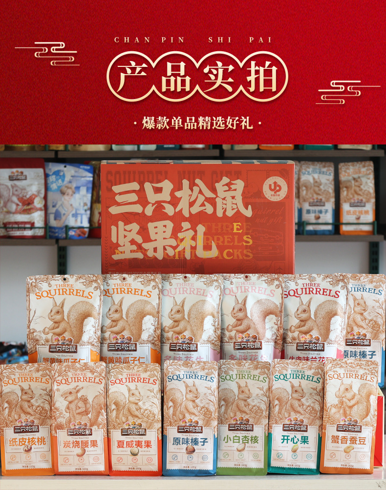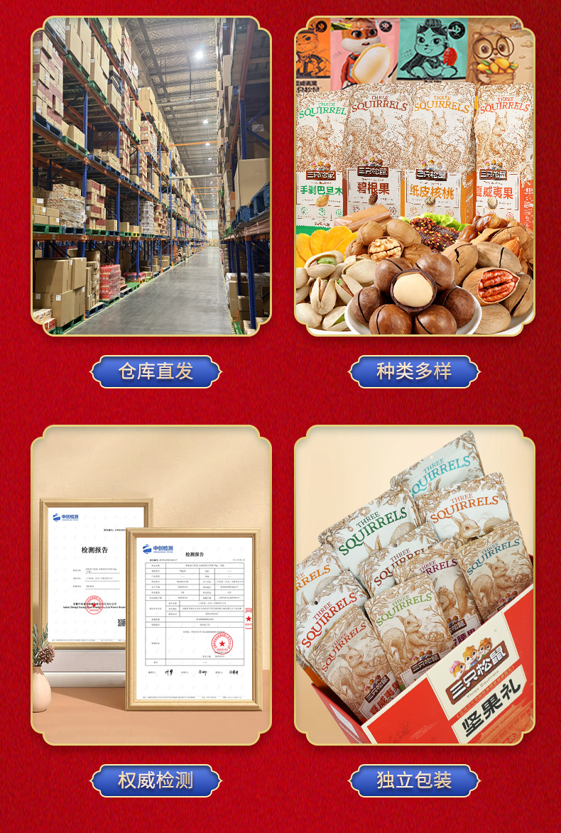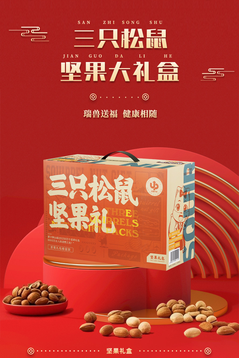リスナッツ3匹のギフトボックス瑞紅金1449g/12袋入りスナックバッグナッツ炒め品セットプレゼント