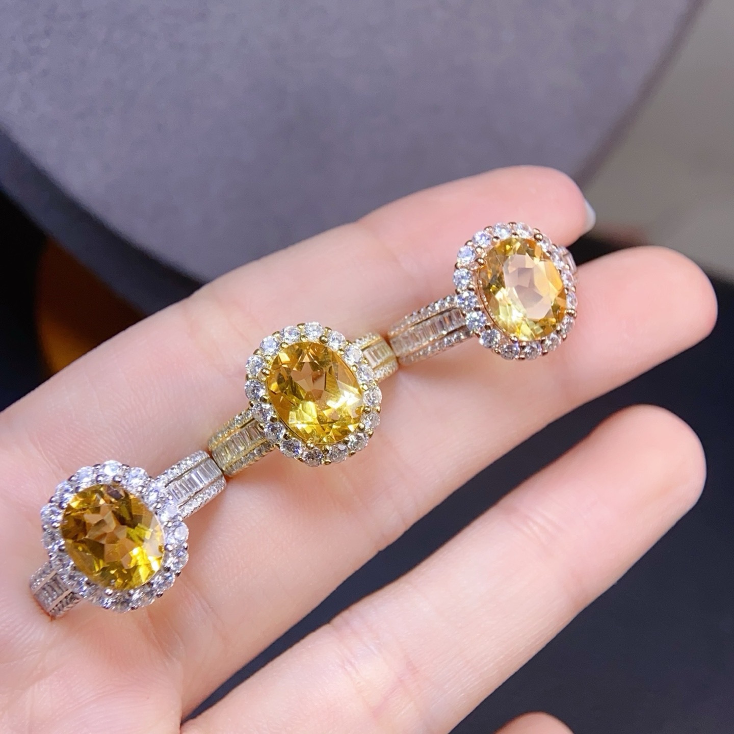 天然招财黄水晶戒指 经典款,戒面颗颗全净体,精工镶嵌,火彩十足,裸石规格7*9mm 爆闪!s925纯银镀18k真金镶嵌 💰65/枚。天然支持鉴定