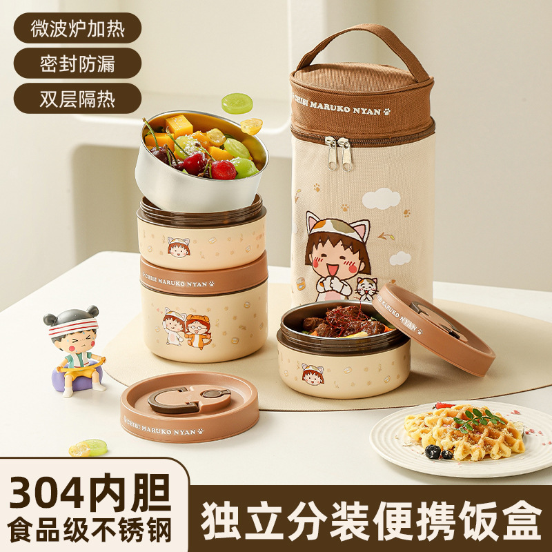厂家直销新款樱桃小丸子不锈钢饭盒儿童卡通便当盒专供批发代发