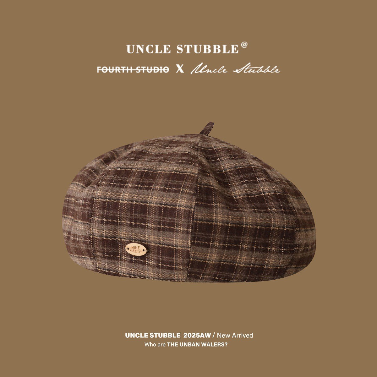 韩系复古贝雷帽精致小标格纹大板型南瓜帽文艺简约百搭画家帽秋冬