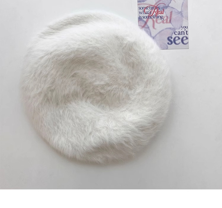 水ドリルのウサギの毛のベレー帽の女性の秋冬の韓国版は顔の小さい毛の画家の帽子の日系の大きい頭の周りの白い帽子を現します。