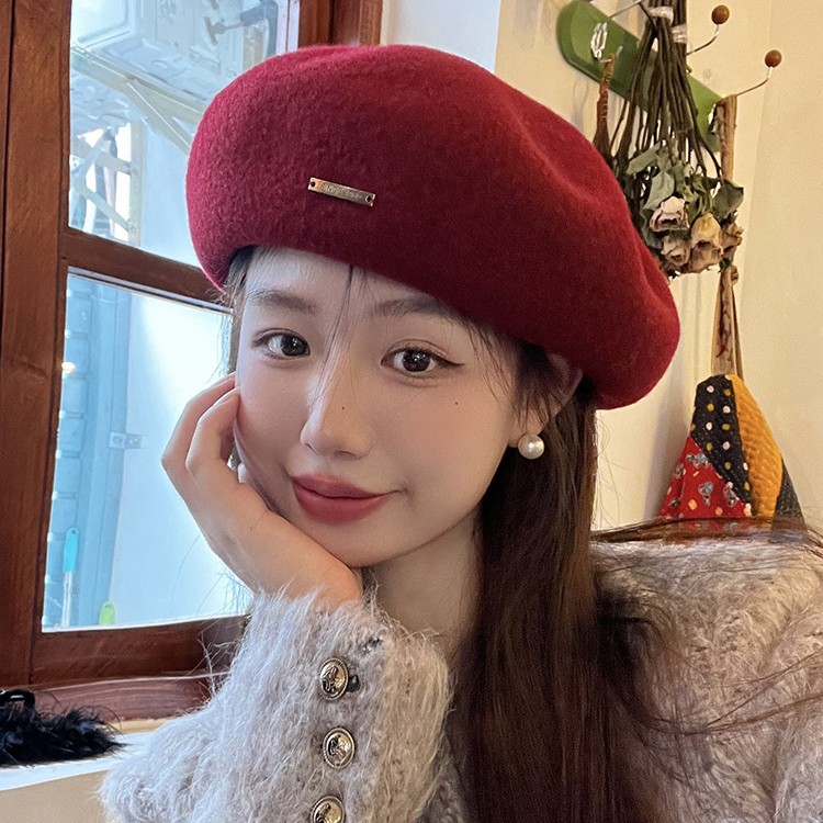 アンコラレッドハットレディース秋冬オーストラリアンピュアウールベレー帽レディース文学レトロペインターハット小顔