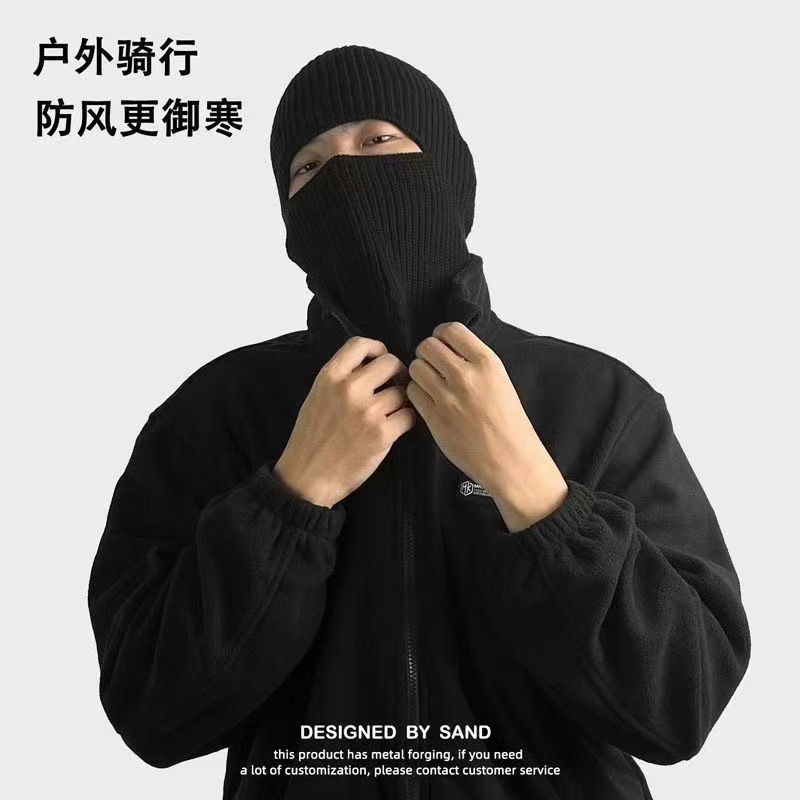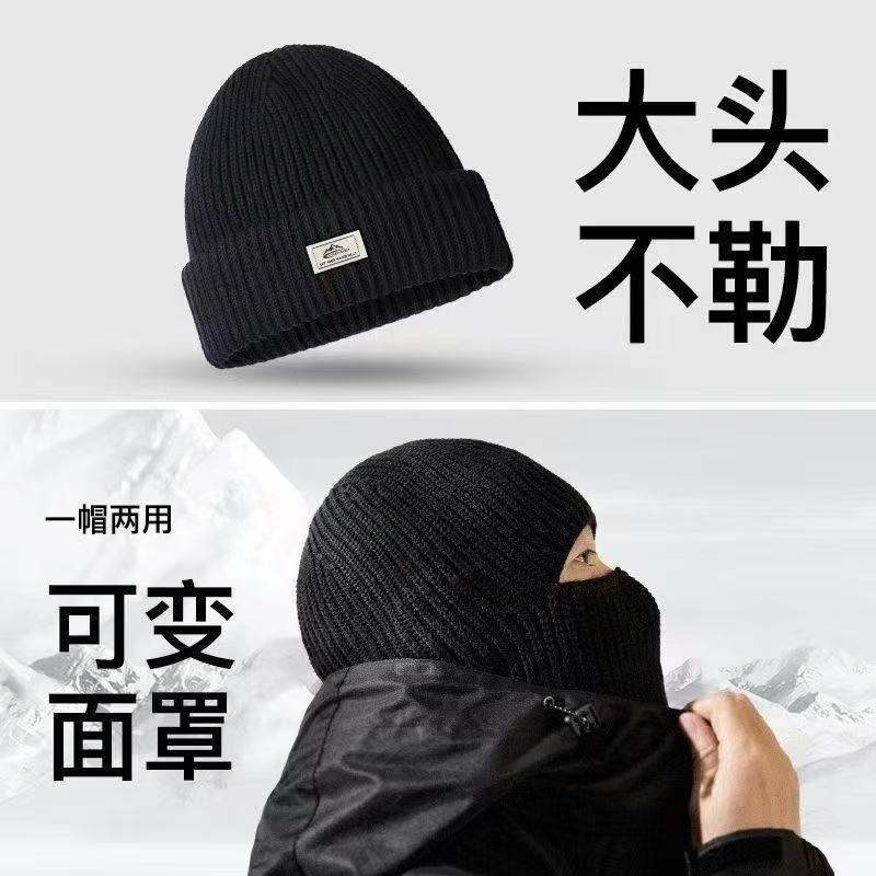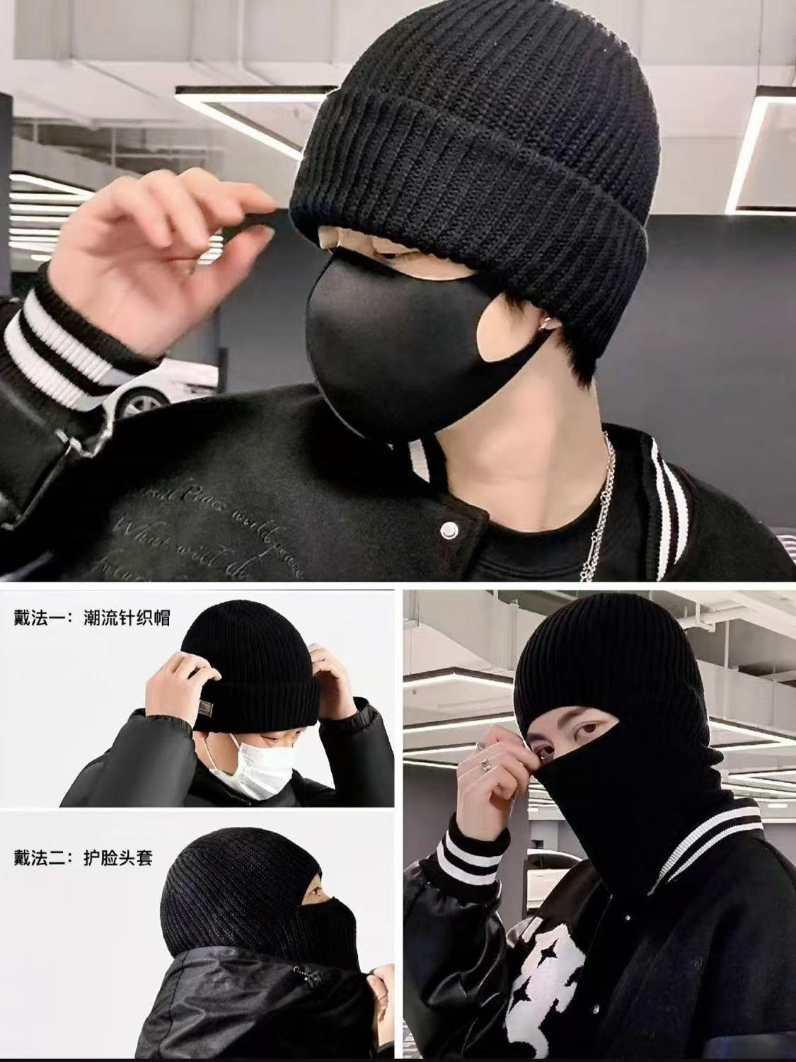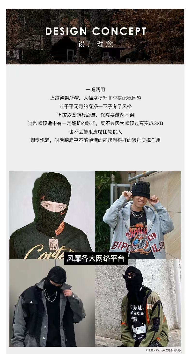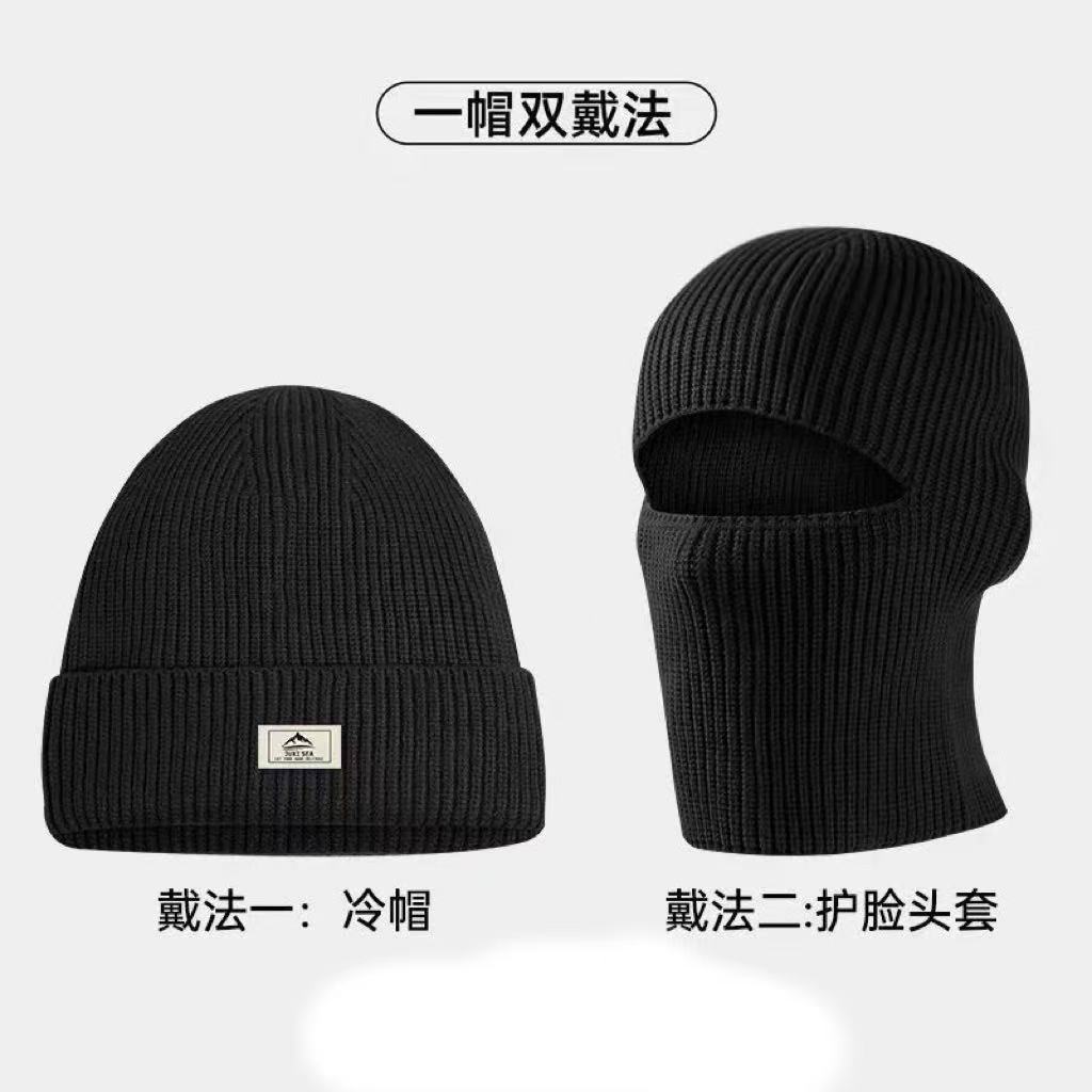 冬季新款时尚百搭帽护耳头套毛线帽骑行防风保暖针织冷帽面罩帽子