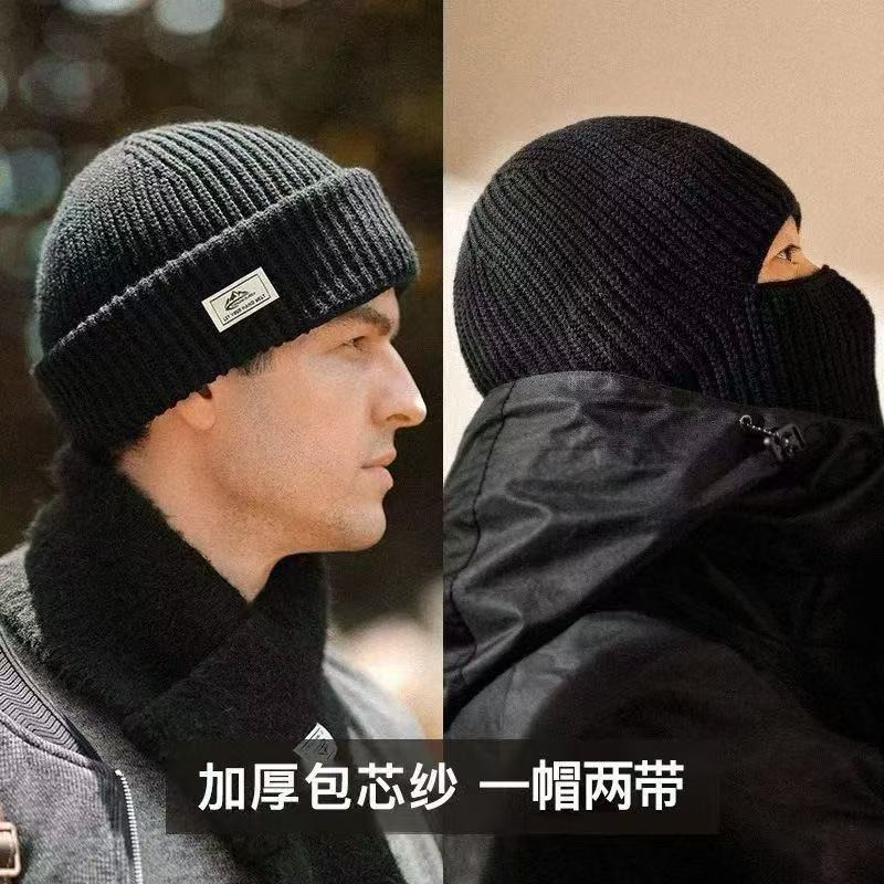 帽子冬メンズニット耳当て防風毛糸防寒フードフェイスマスク保温コールドキャップ両用キャップ