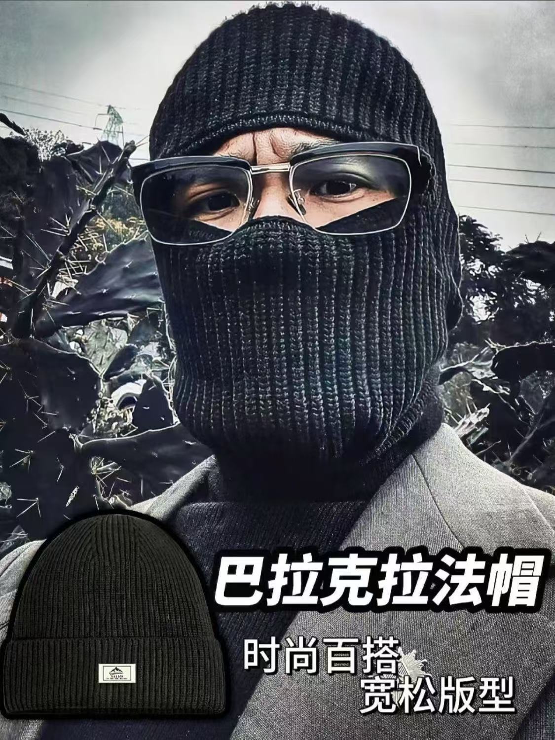 巴拉克拉法帽子男士头套秋冬复古黑色毛线针织冷帽防风护脸面罩女