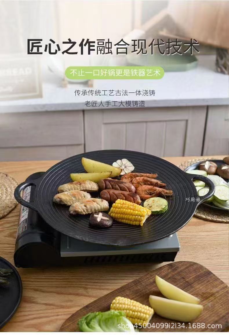 焼き皿屋外焼き肉皿カード式炉キャンプ家庭用焼き韓国式鉄板焼き皿電磁炉鋳鉄焼き皿
