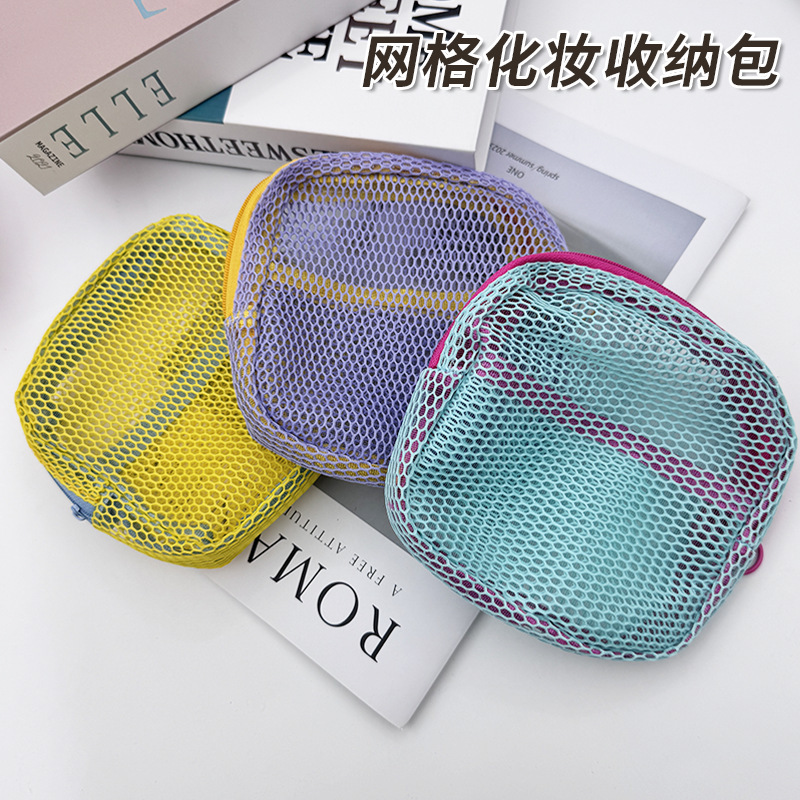 跨境多巴胺女网格豆腐包口红收纳小包新款大容量便携式旅行化妆包