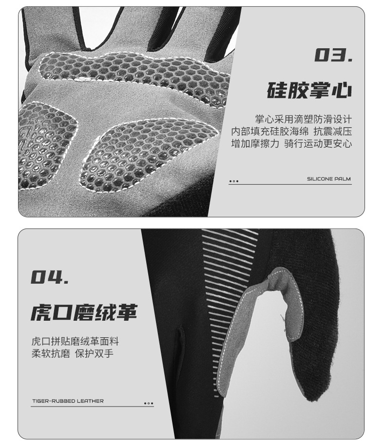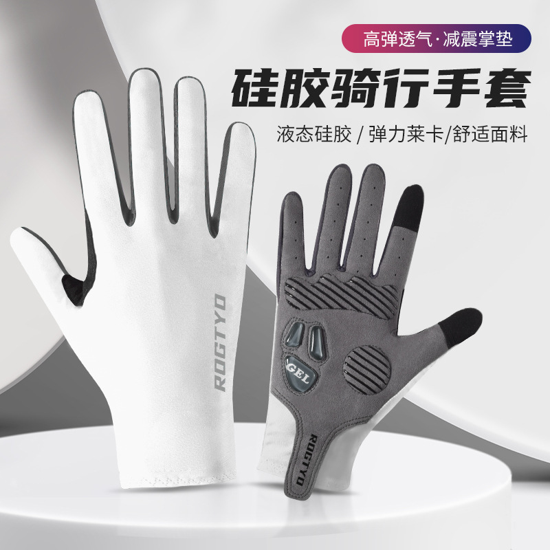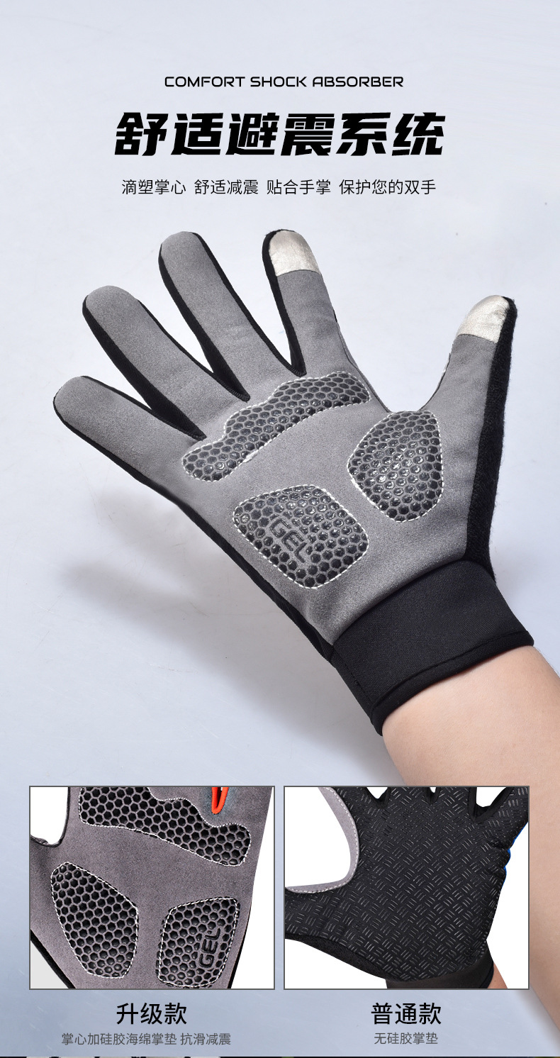 一字米全指手套 自行车公路车秋冬单车防震手套 骑行硅胶长指手套