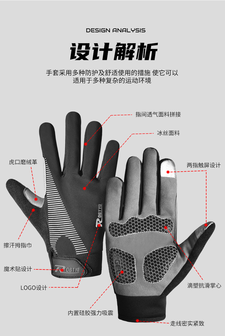 一字米自転車秋冬全指手袋道路マウンテンバイク長指自転車手袋卸売り