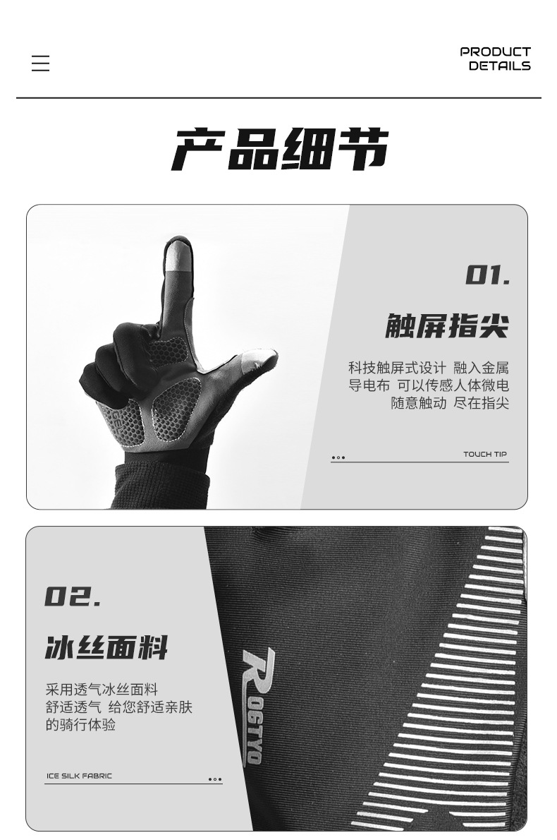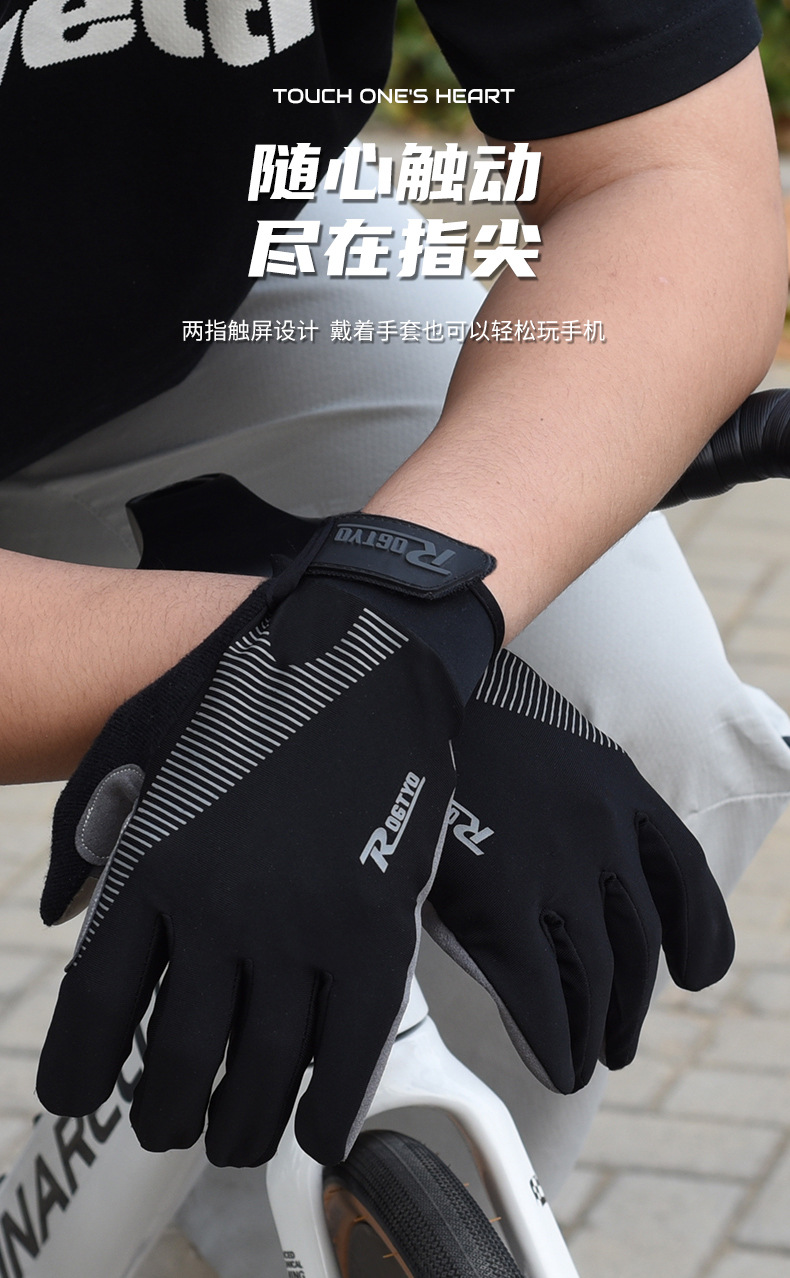 ROGTYO自転車に乗る手袋の長い指はタッチパネルの道路の車のオートバイの手袋のすべての指の男女の春秋の冬を指します。