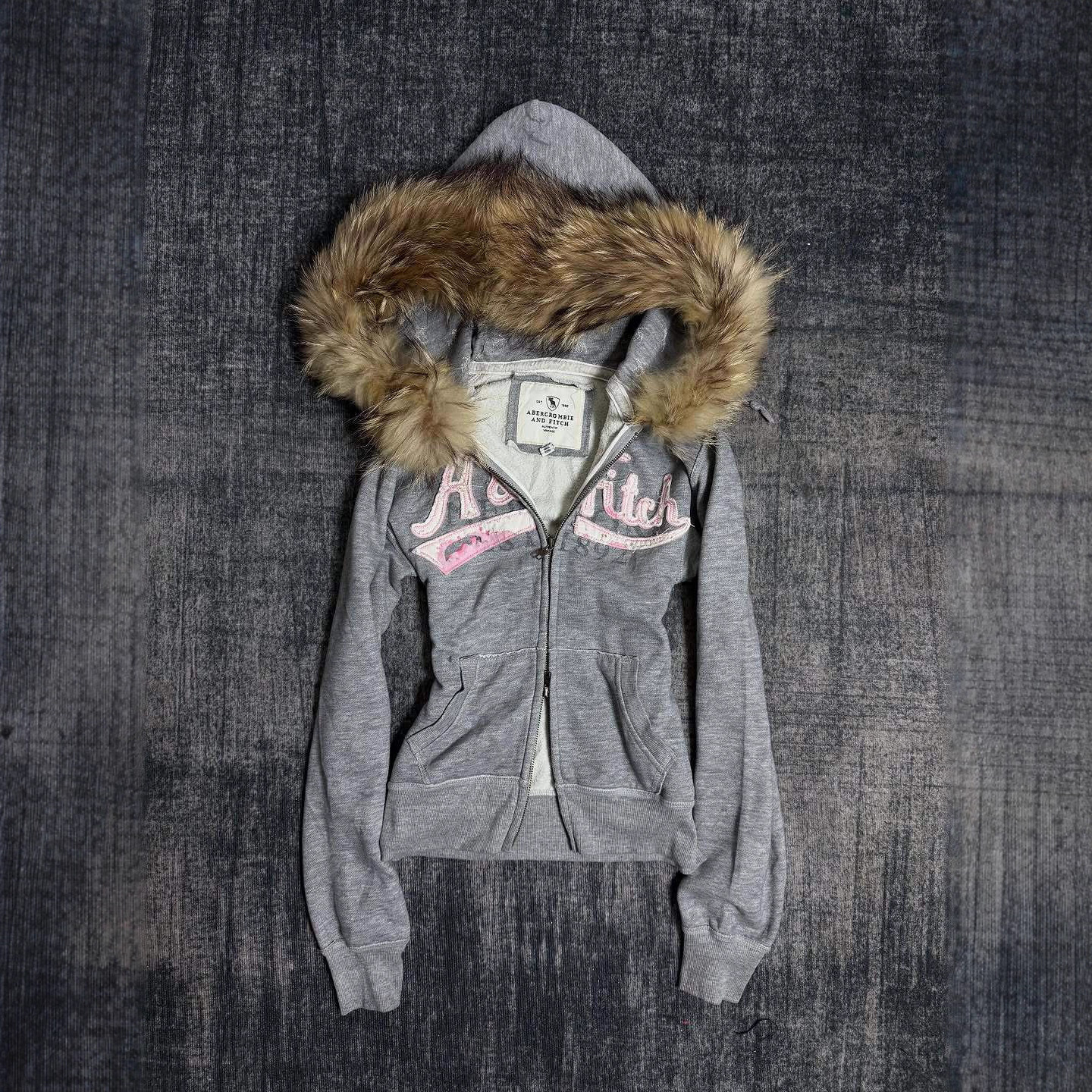 美式复古Vintage古着粉色毛绒美式毛领连帽收腰女辣妹y2k卫衣外套