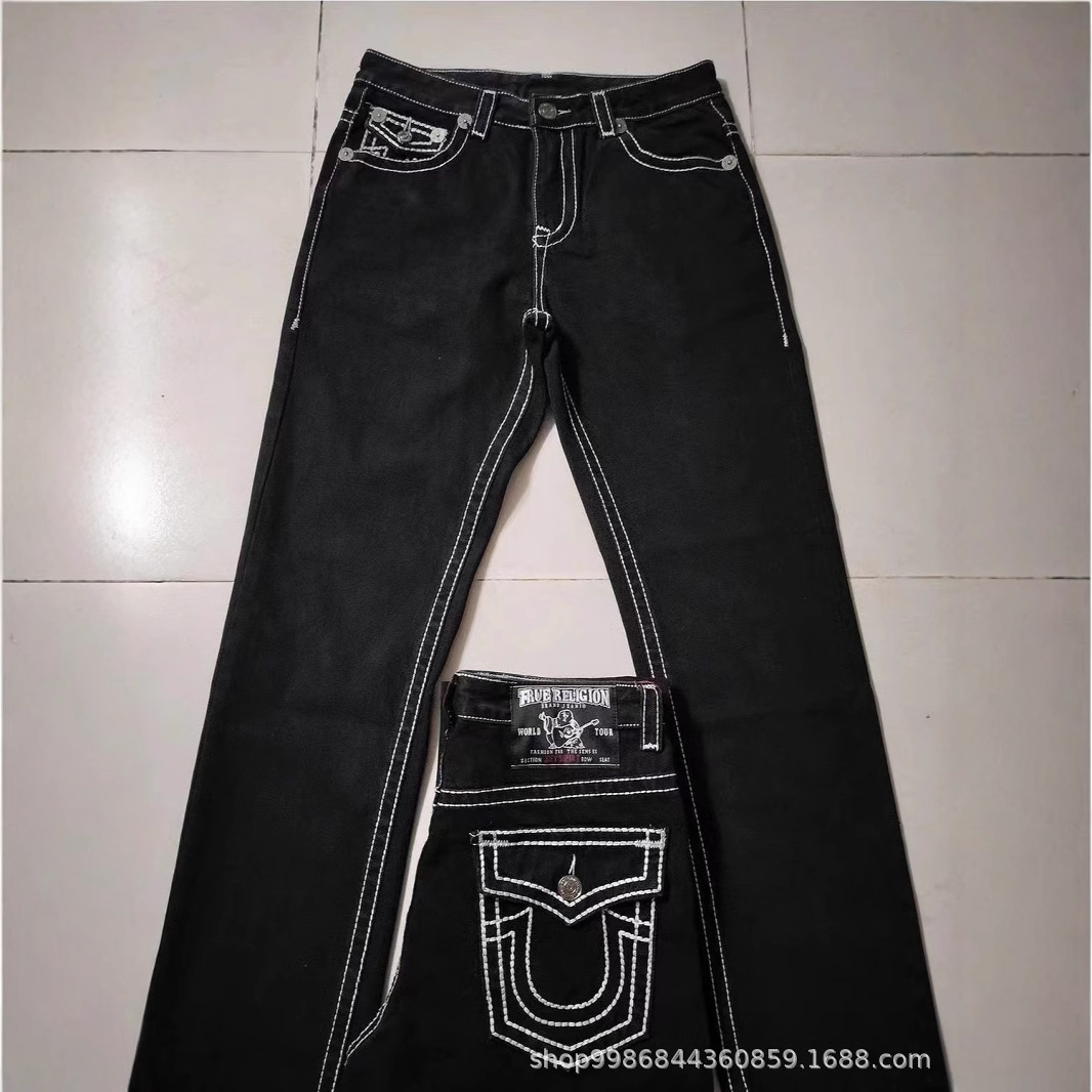 トレンディで多用途なジーンズ、白い太いラインのストレートカジュアルジーンズ、クロスボーダー外国貿易、アメリカンレトロな個性ストリート