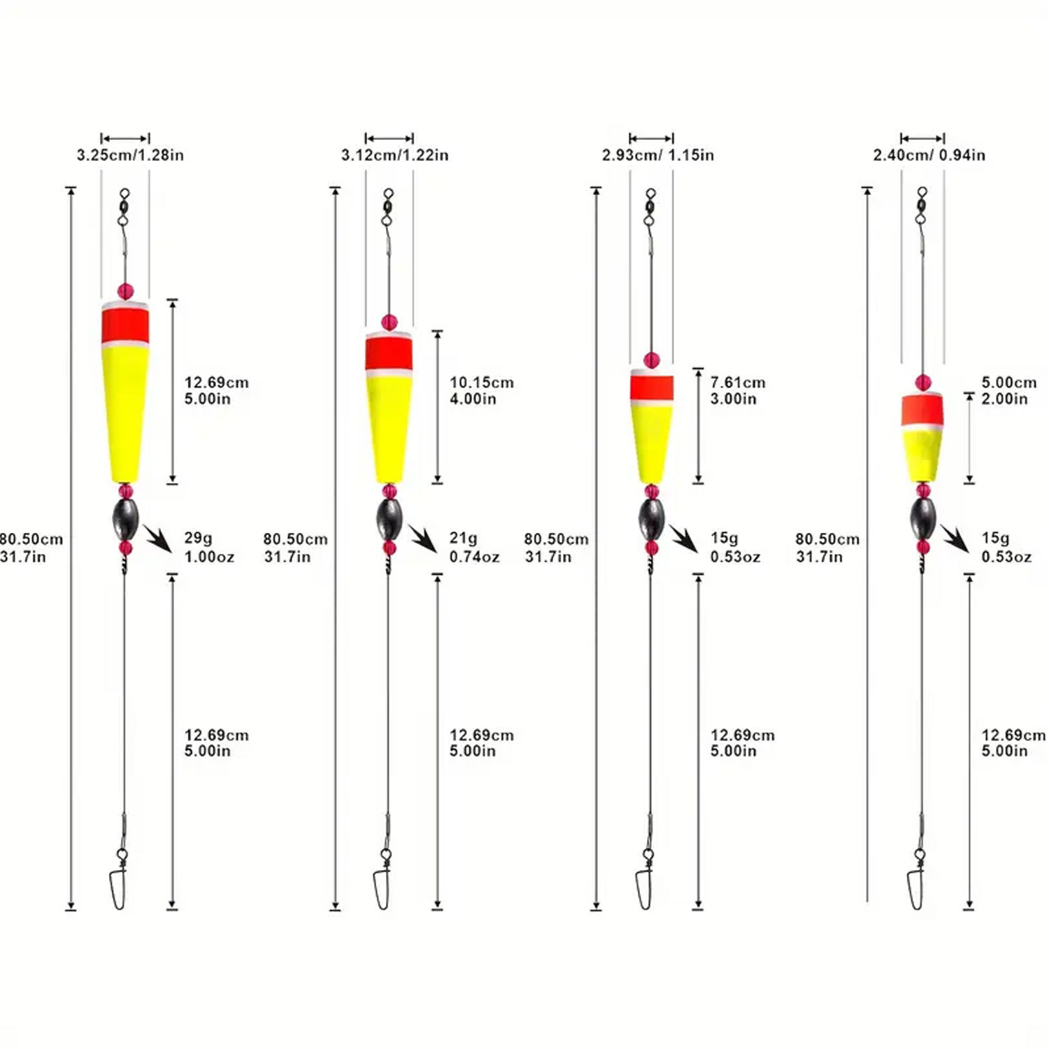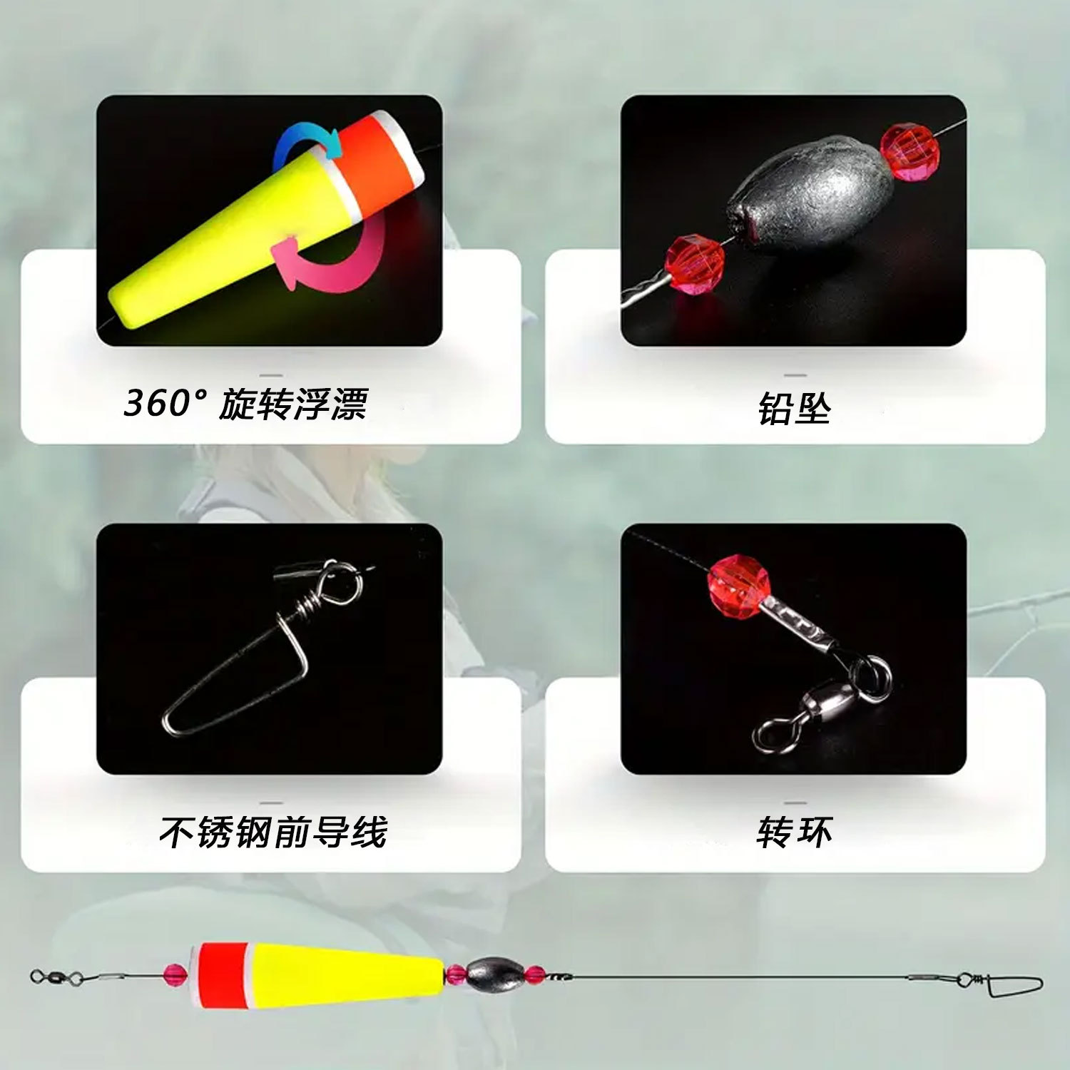 EVA製の釣り用ウキは、釣り糸を傷つけずにチューブに挿入でき、海釣りや磯釣りに適しており、遠投が可能で、高感度で目を引く浮き釣りウキです。