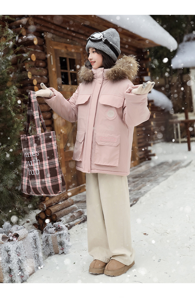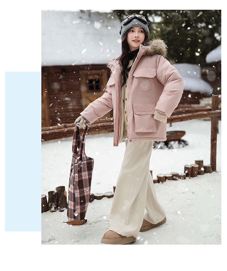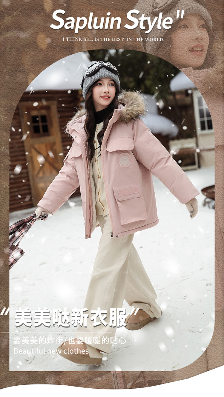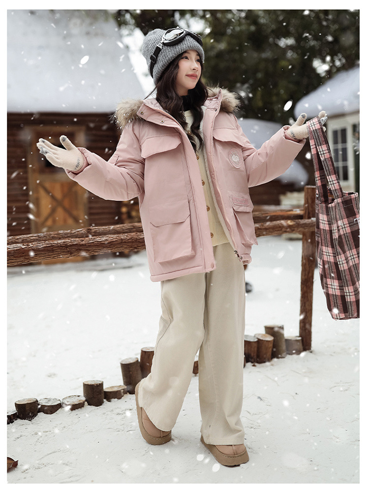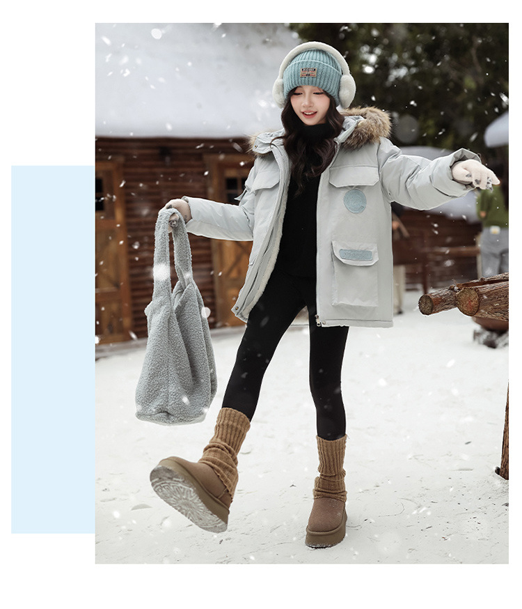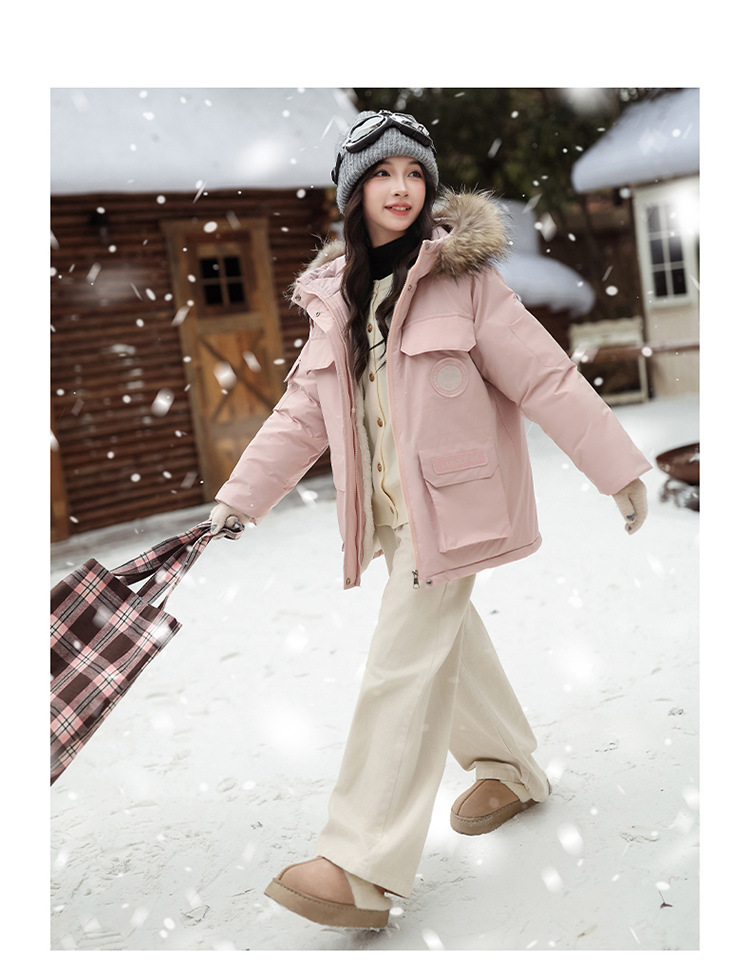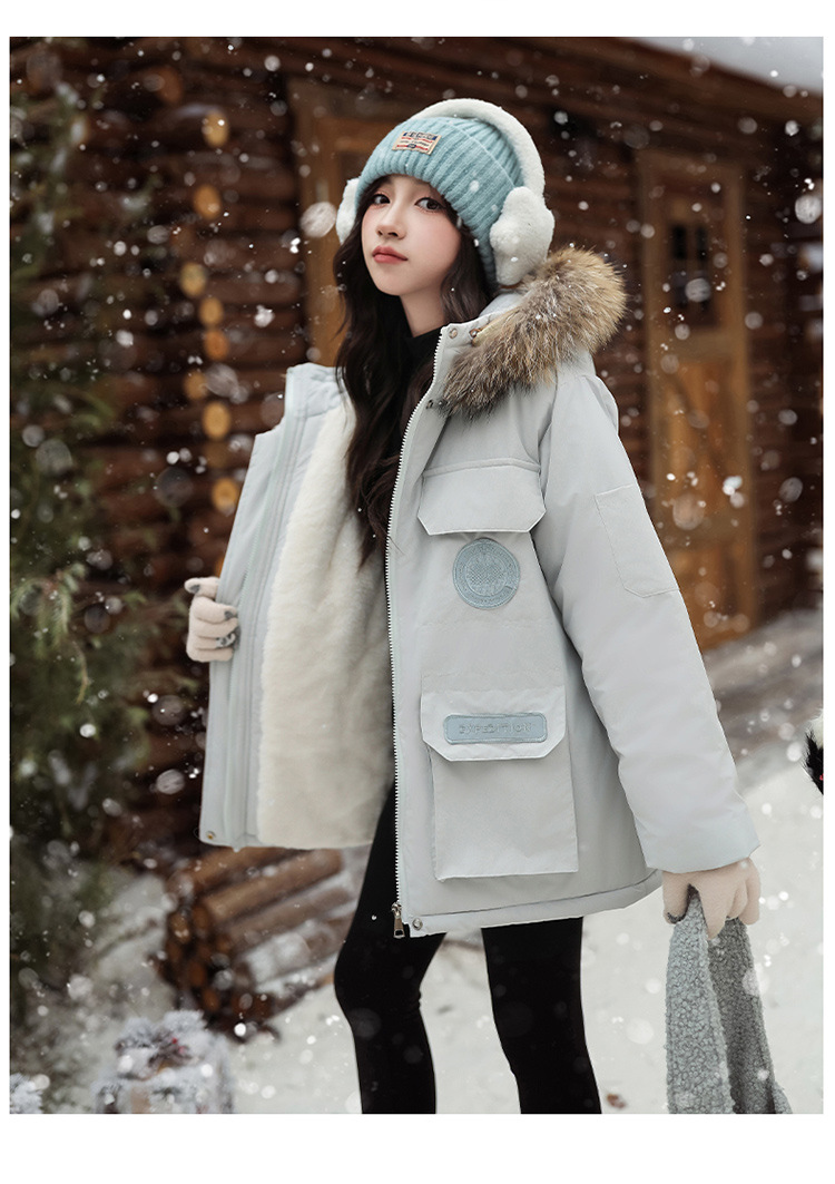 ライトブルー、ファーの襟付き,ピンクのファー襟