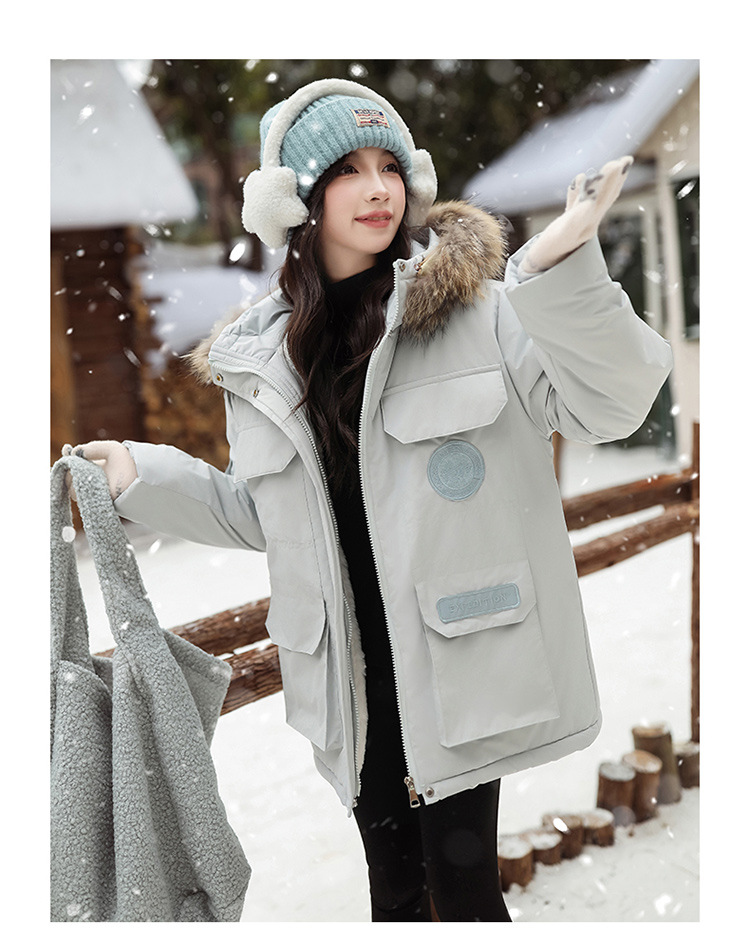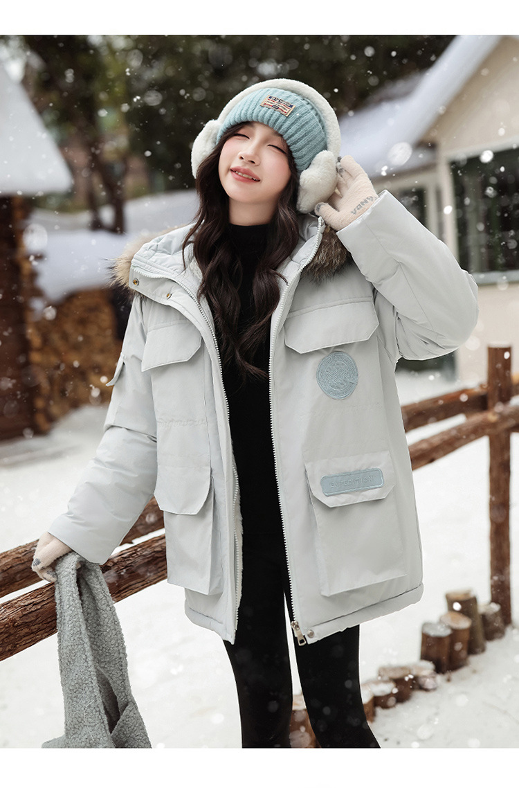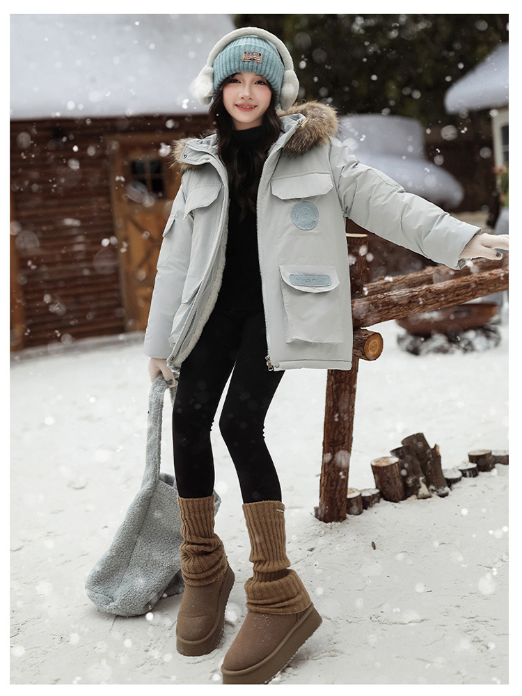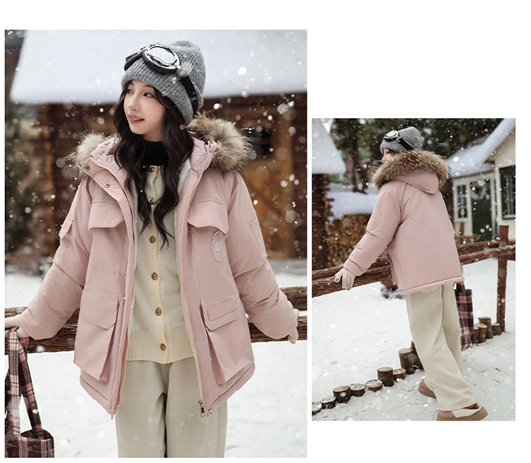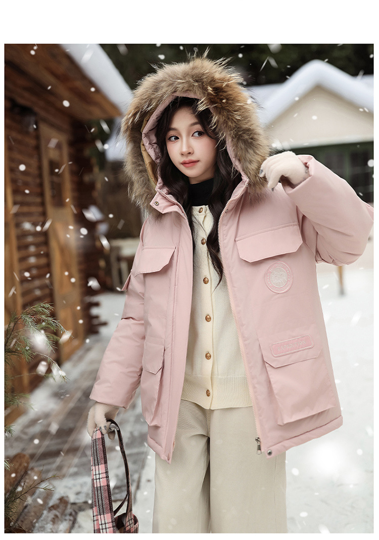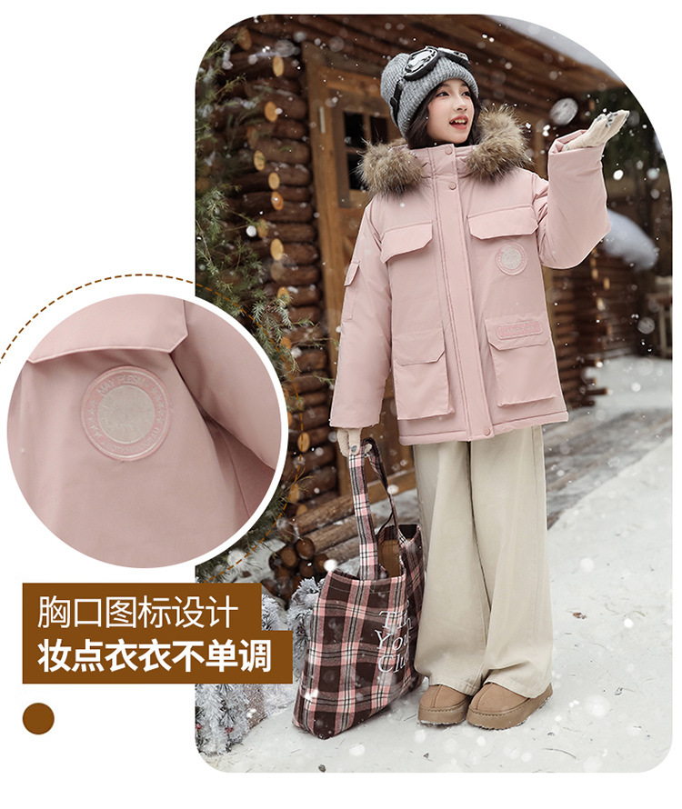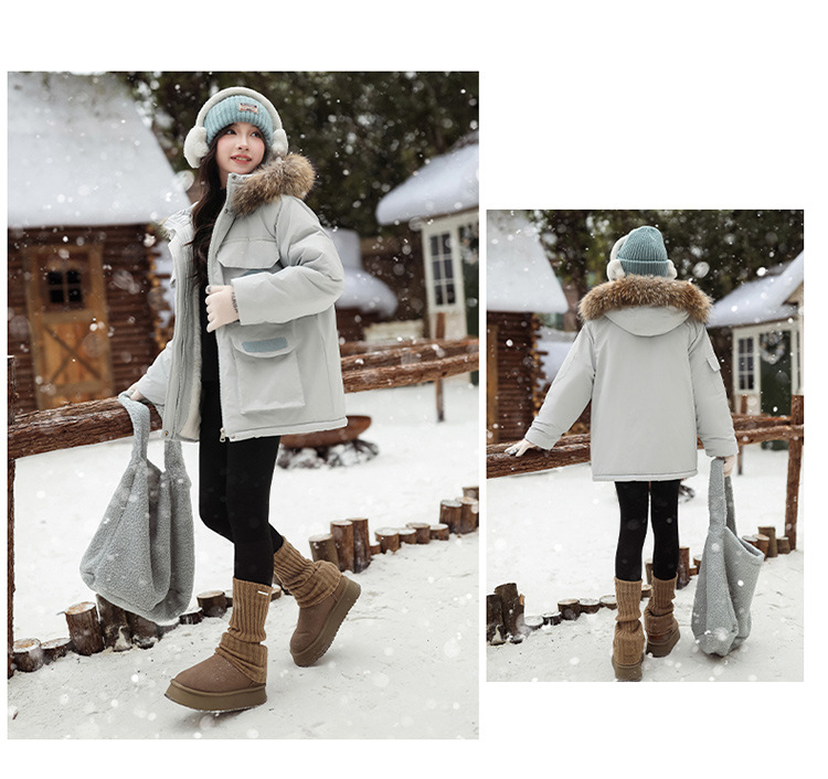 ライトブルー、ファーの襟付き,ピンクのファー襟