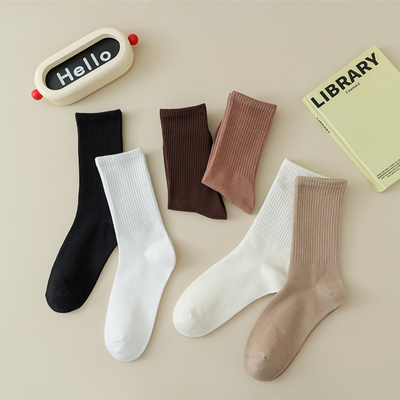 春と秋の男性用の新しい靴下、無地のレターソックス、ミッドカーフソックス、吸汗性、通気性、消臭性、トレンディなメンズスポーツレターソックス